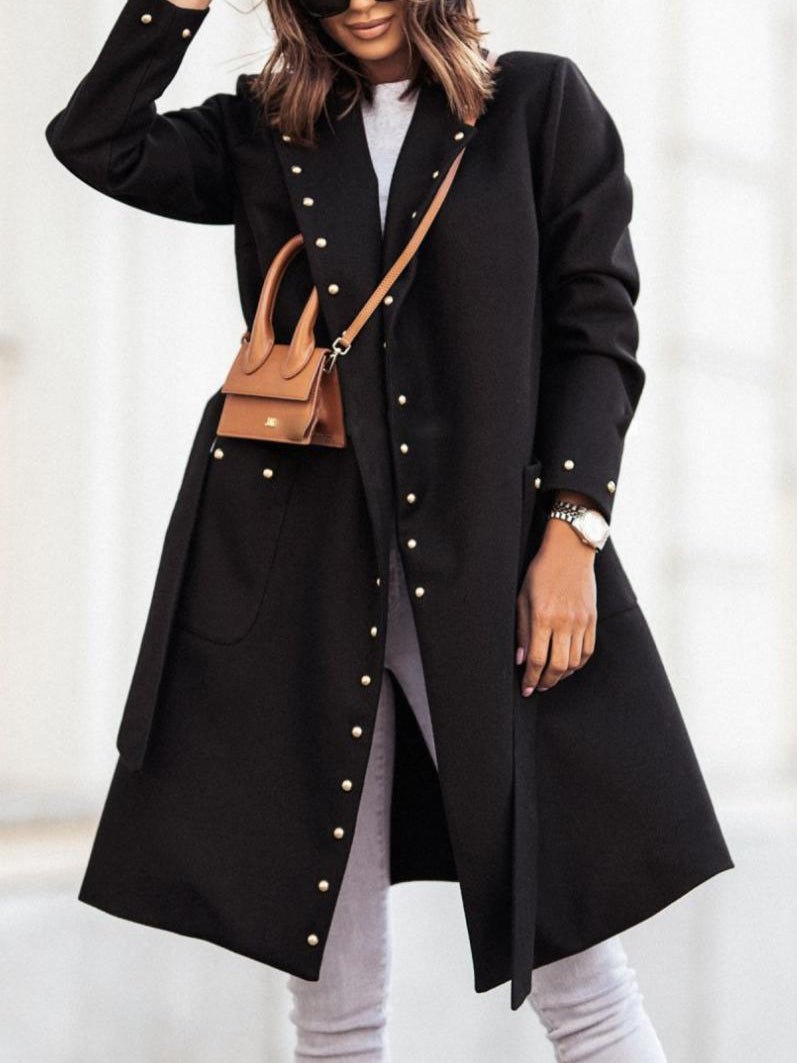 Coats Simple Double Breasted Rivet Lapel Wool Coat for Women