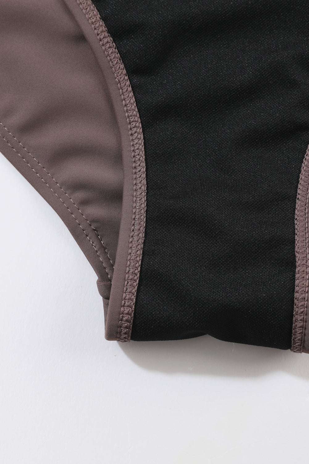 Coffee Knotted Split Skirt One Piece Swim Dress