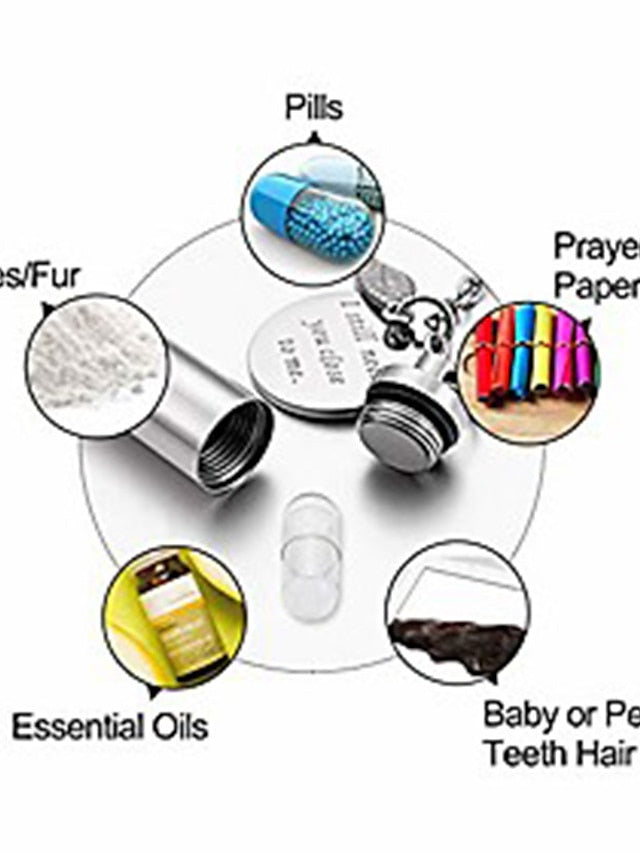 cylinder urn necklace for ashes cremation jewelry/keychain for human pet stainless steel memorial keepsake pendant with angel wing charm ashes jewelry-silver m