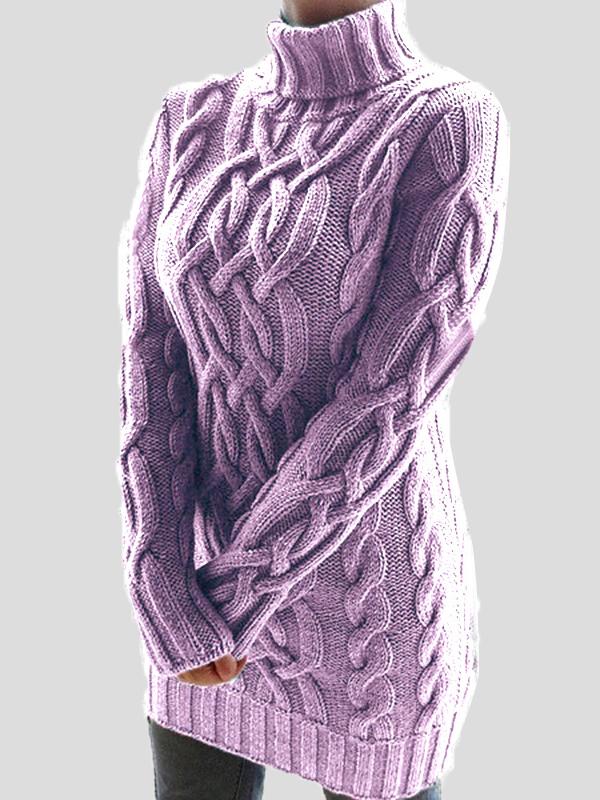 Dresses High Collar Retro Thick Line Twist Sweater Dress for Women