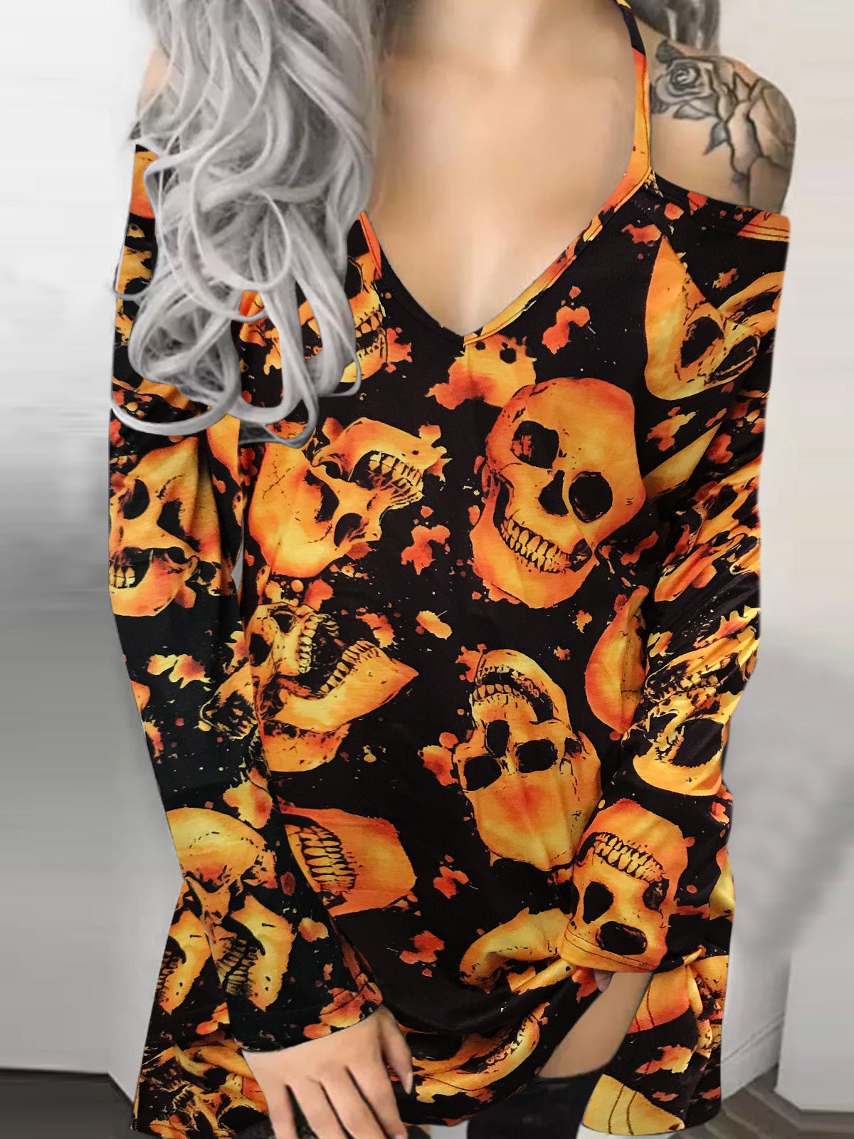 - Feature: Printed, V-Neck, Off-Shoulder, Long Sleeve