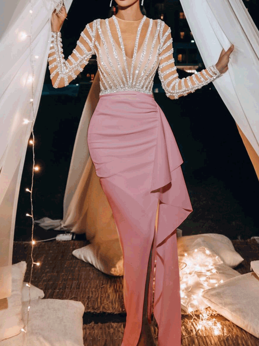 Dresses Sequins Long Sleeve Irregular Dress for Women