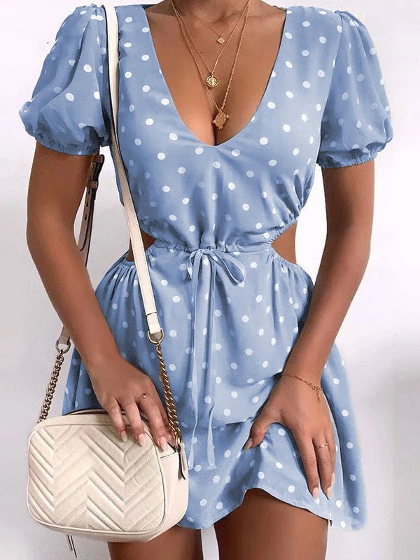 Dresses V-Neck Dot Print Hollow Elastic Waist Dress for Women