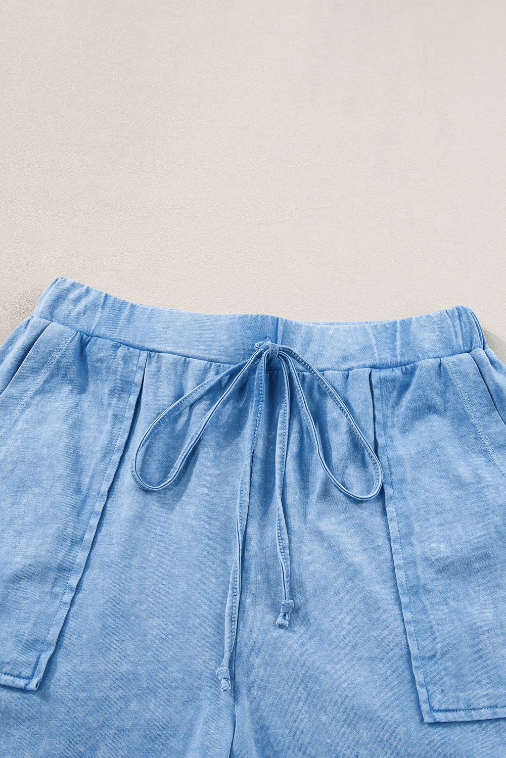Dusk Blue Mineral Wash Tee and Drawstring Shorts Set