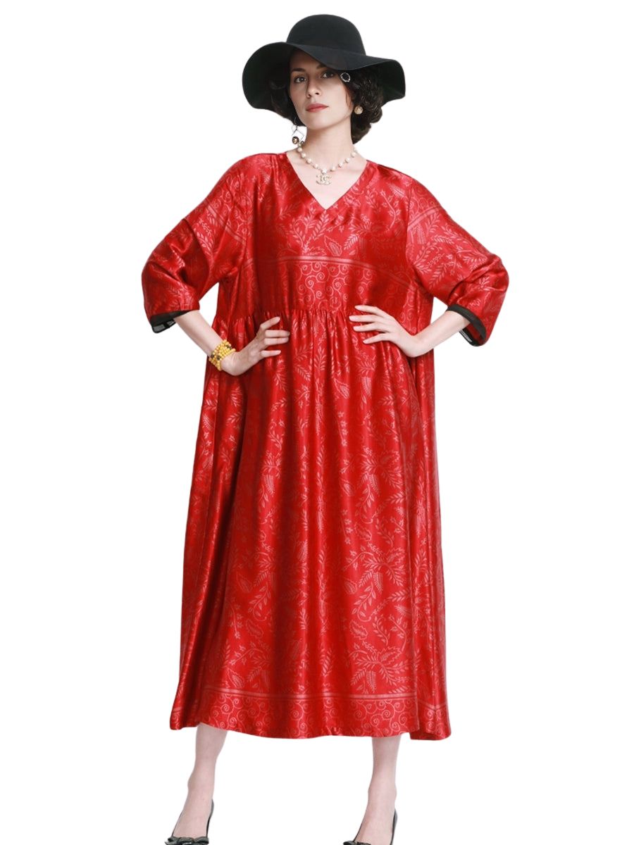 Embrace sophistication with our Elegant Black and Gold Floral Maxi Dress. This stunning dress features a rich black fabric adorned with intricate gold floral patterns, exuding luxury and grace. The V-neckline and three-quarter sleeves offer a classic silhouette, while the gathered waist provides a flattering fit for all body types. Perfect for both daytime elegance and evening glamour, this versatile midi dress is a must-have addition to your wardrobe. Pair it with your favorite heels and accessories to complete the look.