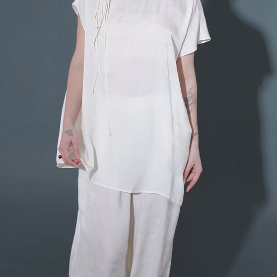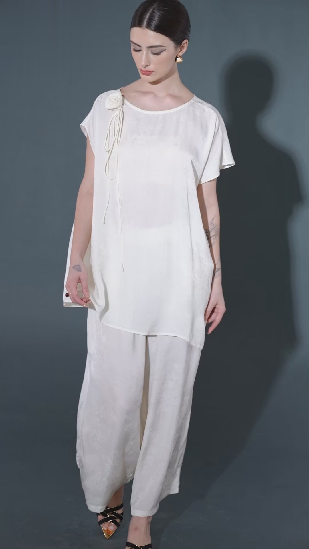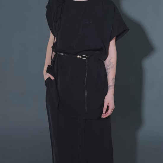 Elevate your wardrobe with our Elegant Black Wide-Leg Pants and Belted Top Set. This chic ensemble features a stylish loose-fit top with short sleeves and a delicate belt that cinches the waist, adding a touch of sophistication. Paired with comfortable wide-leg pants, this set offers a perfect blend of elegance and comfort. Ideal for both casual and formal occasions, the all-black design ensures a timeless look that can be easily accessorized. Step out with confidence and grace in this versatile outfit.