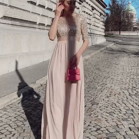 Elevate your formal attire with this exquisite sequin evening dress and captivate the crowd with your impeccable style.