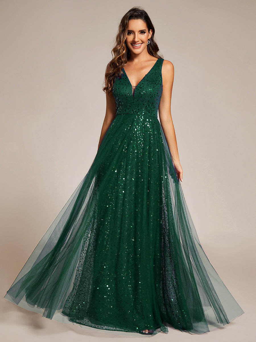 Elegant V-Neck Backless Sequin Evening Dress with Sleeveless