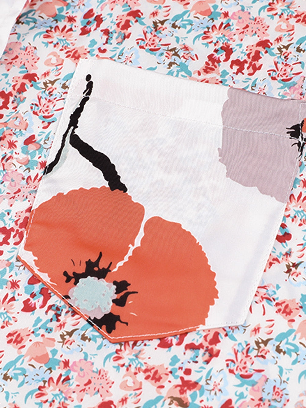 Elevate your wardrobe with this Fiery Red Floral Patchwork Buttoned Shirt with Pocket and enjoy the perfect blend of style and functionality!
