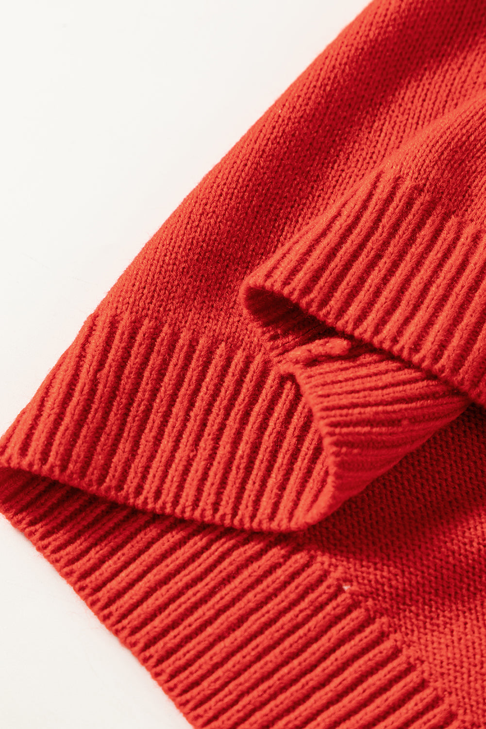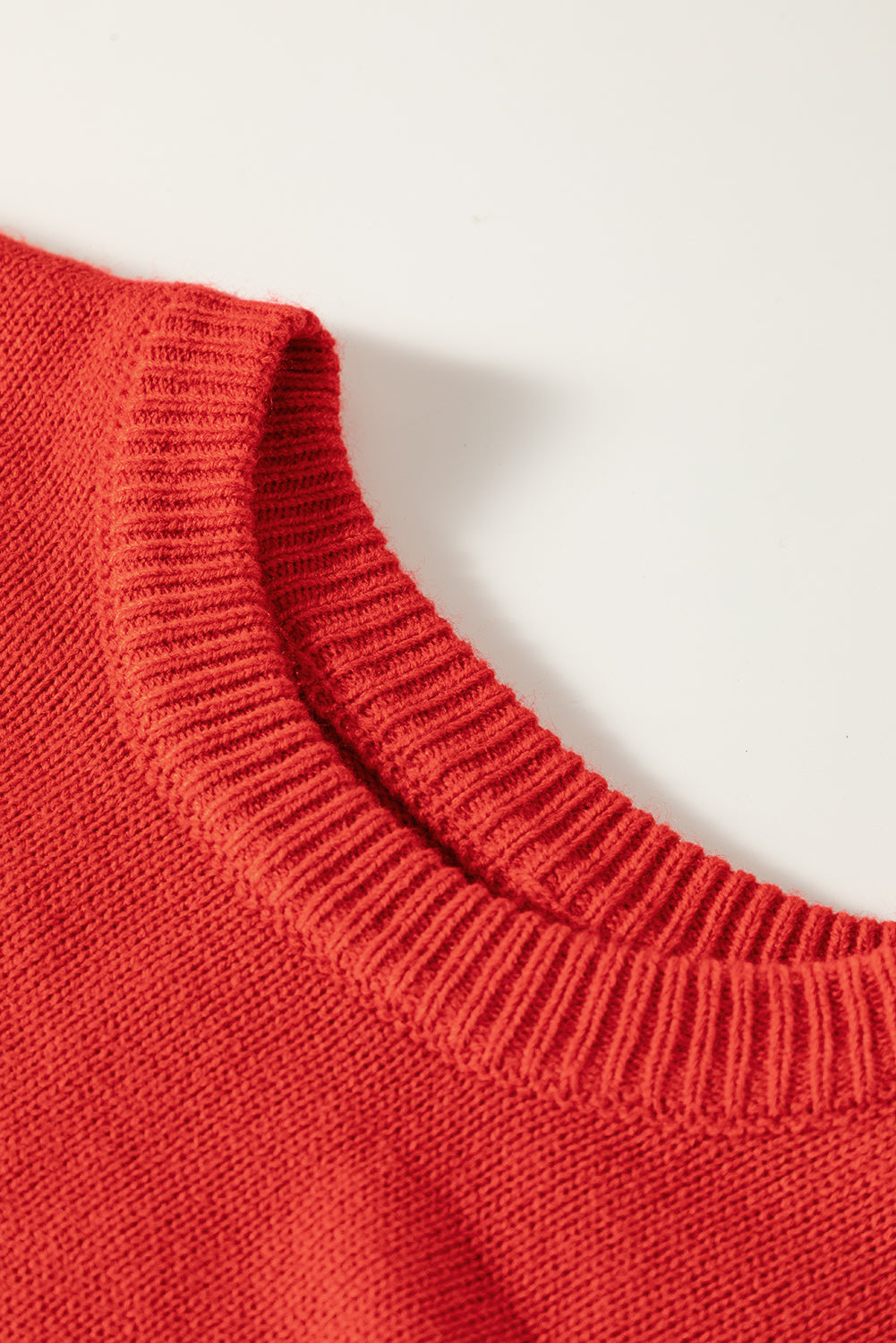 - Solid pattern with rib details at the neckline, cuffs, and hemline