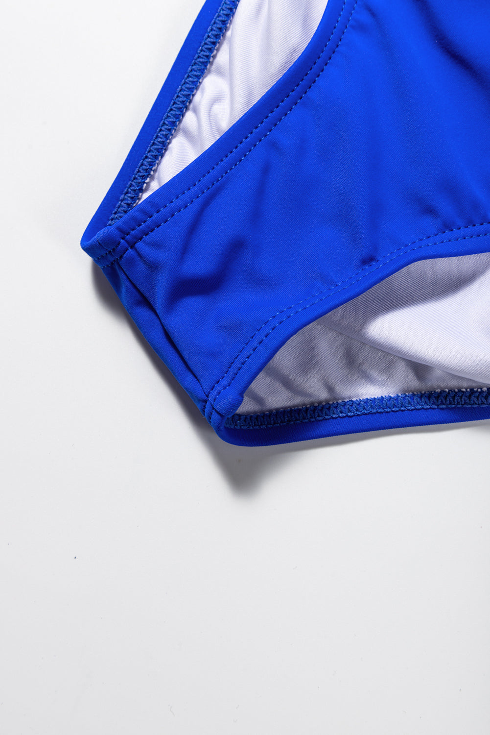 Floral Print Ruffle Trim High Waisted Bikini Set in Ocean Blue