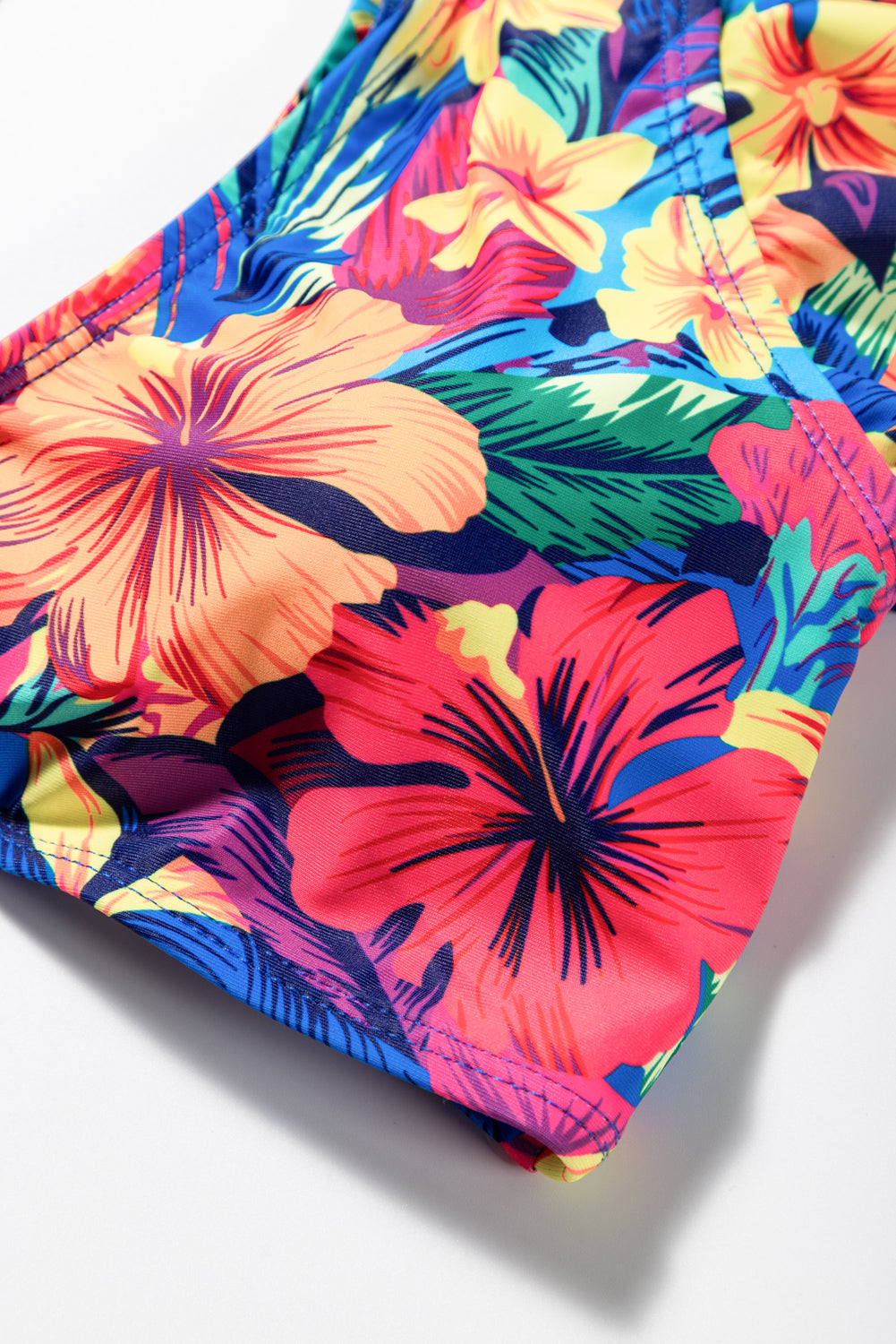 Floral Print Front Tie High Waist Bikini Swimsuit with Ruffles
