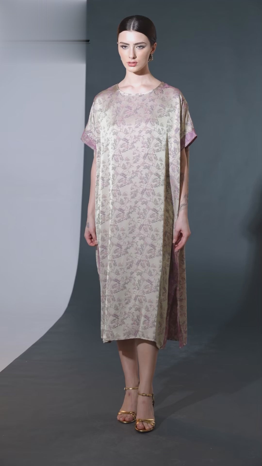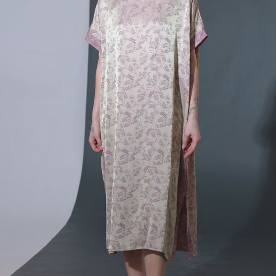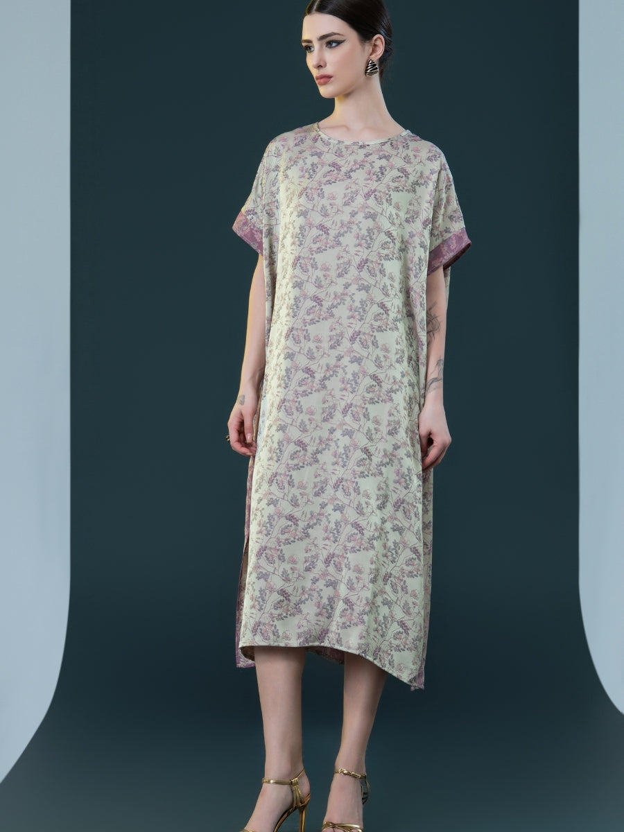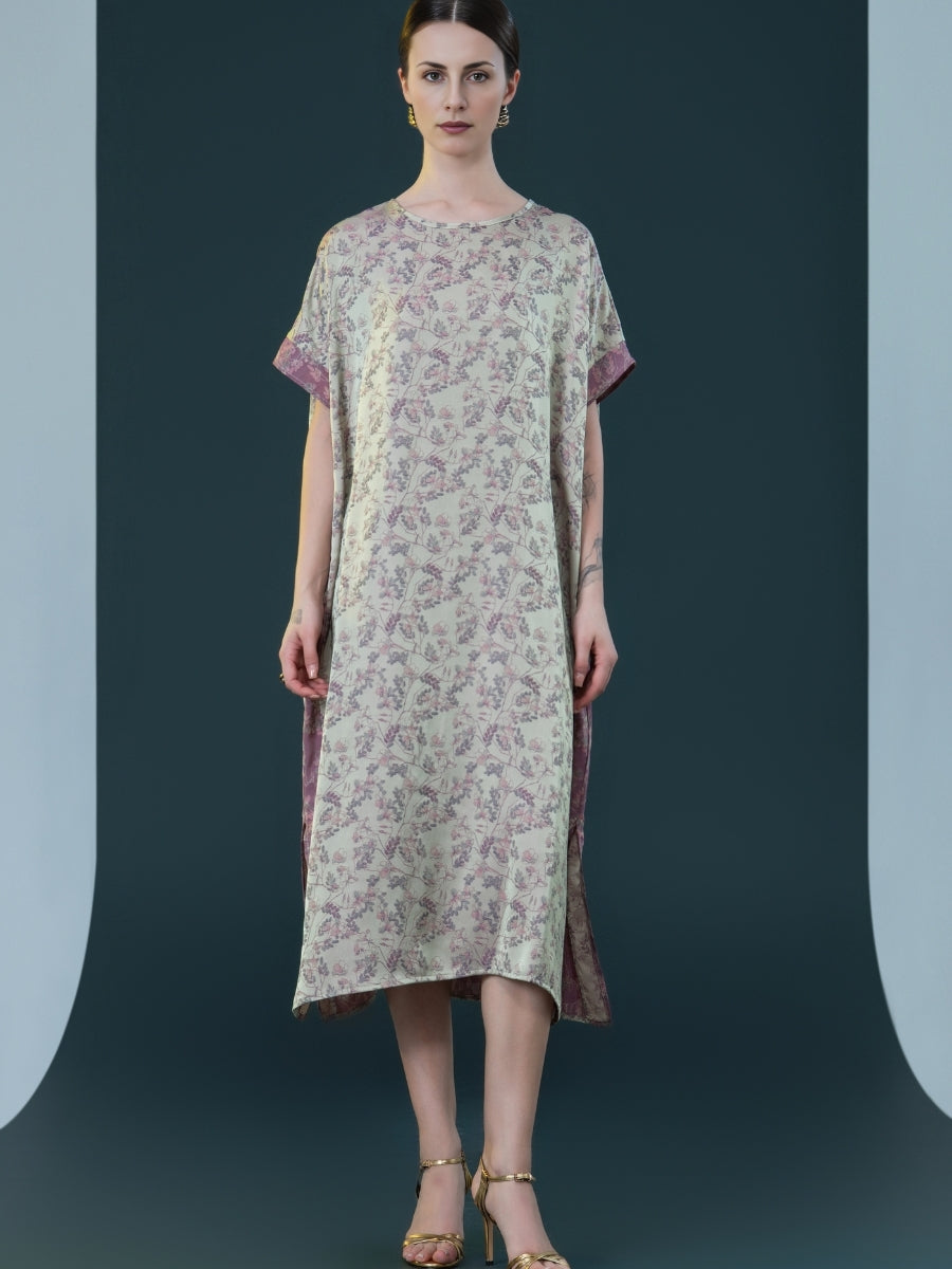 Add a touch of grace to your wardrobe with this floral print side-slit midi dress. Featuring a charming floral pattern in soft hues, this dress combines elegance with comfort. The relaxed fit and side slits ensure ease of movement, while the contrasting sleeve and side panel details add a unique touch. Perfect for both casual outings and semi-formal events, pair this dress with your favorite heels or flats for a complete look.