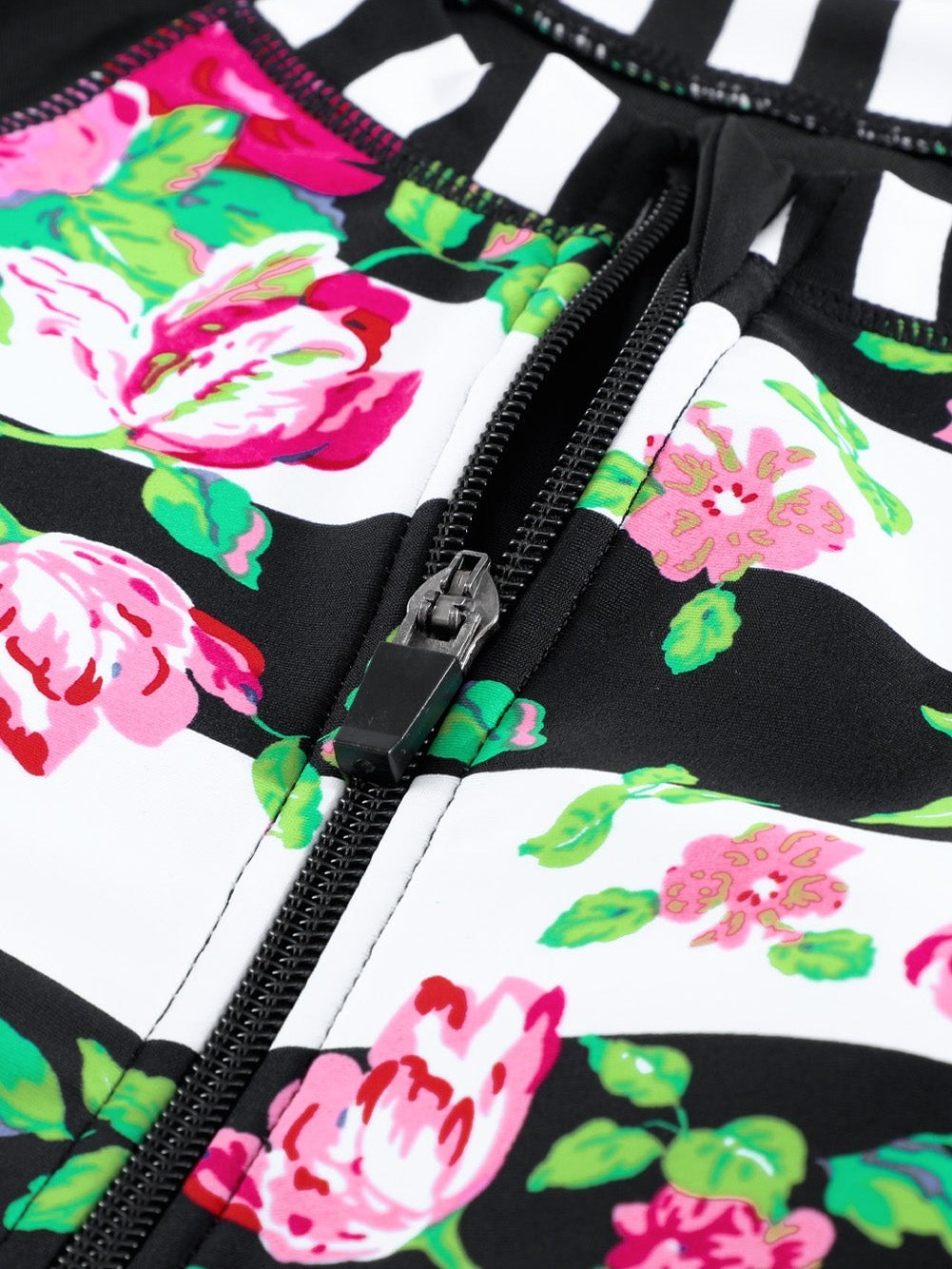 Floral Striped Patchwork Rashguard One-piece Swimsuit