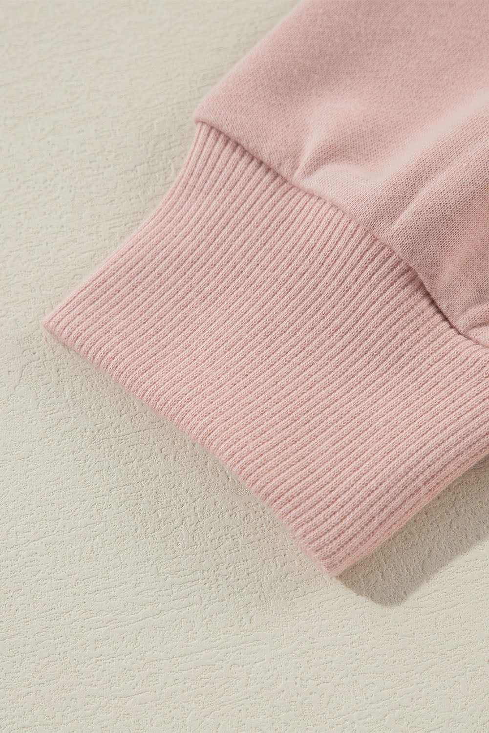 Fushia Solid Color Rivet Stud Raglan Sleeve Hoodie with Pocket