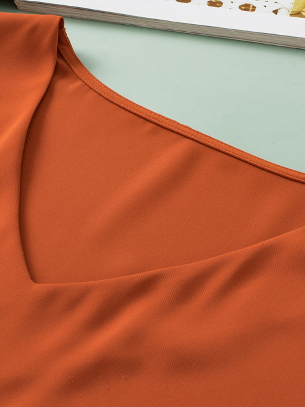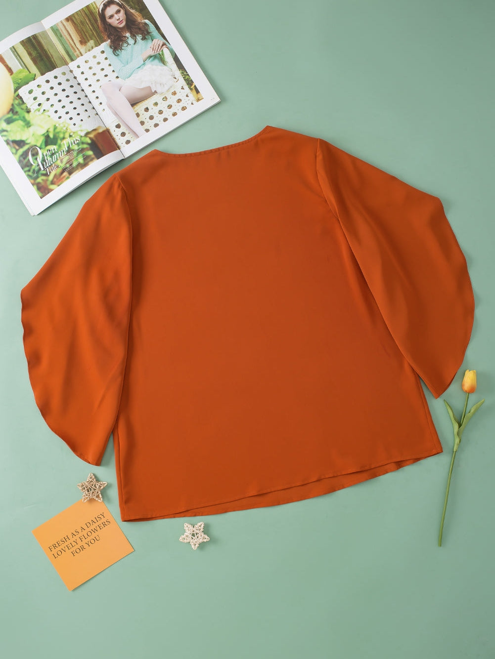 Golden Flame Wrap Sleeve V-Neck Plus Size Blouse
