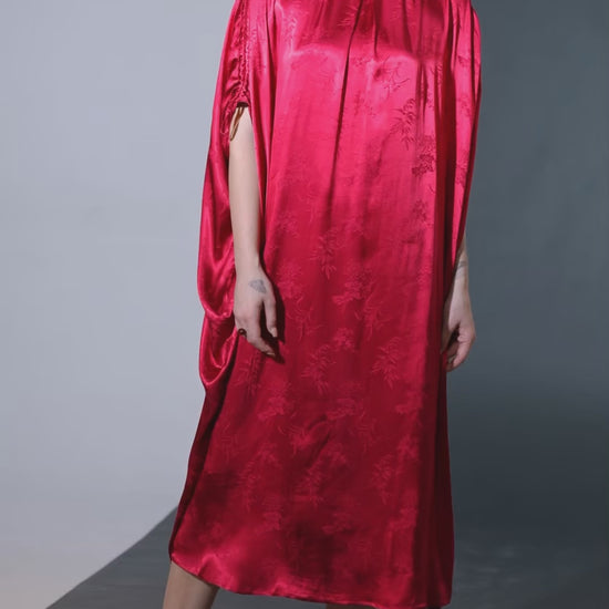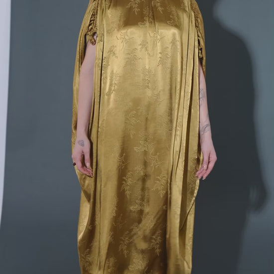 Embrace luxury and elegance with our Golden Silk Embroidered Midi Kaftan Dress. Crafted from sumptuous silk, this dress features intricate floral embroidery that adds a touch of sophistication to its rich golden hue. The relaxed kaftan silhouette offers both comfort and style, making it perfect for special occasions or an upscale evening out. The unique sleeve design adds a modern twist, ensuring you stand out with grace and poise.