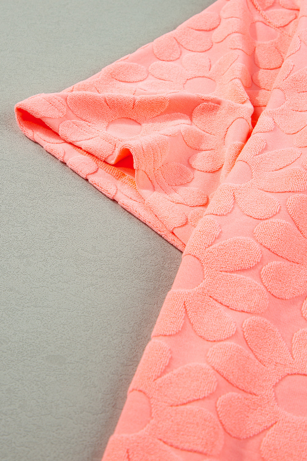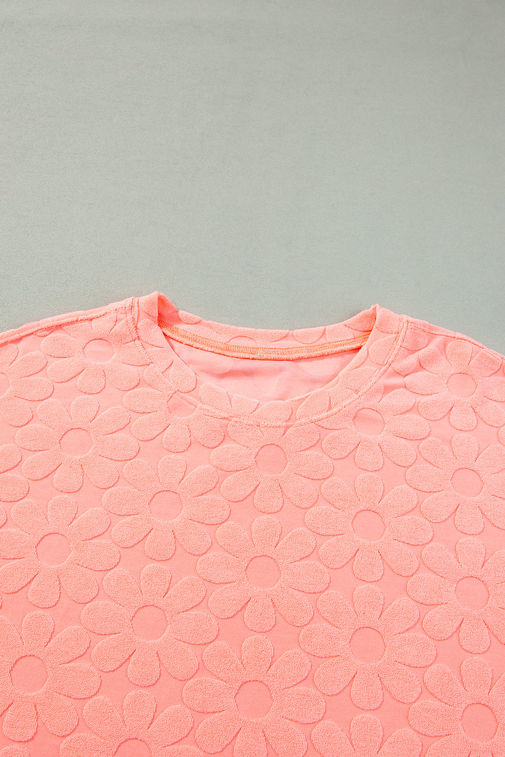 Embrace effortless styling with our Grapefruit Orange Floral Textured Short Sleeve Top and Shorts Set and take your lounge wear game to the next level!