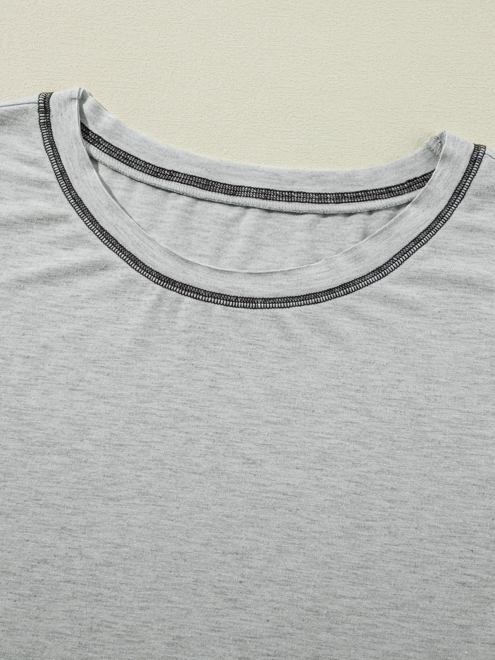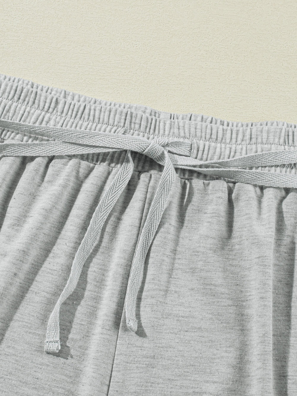 Upgrade Your Loungewear with Our Gray Contrast Stitching Cuffed Sleeve Plus Shorts Set
