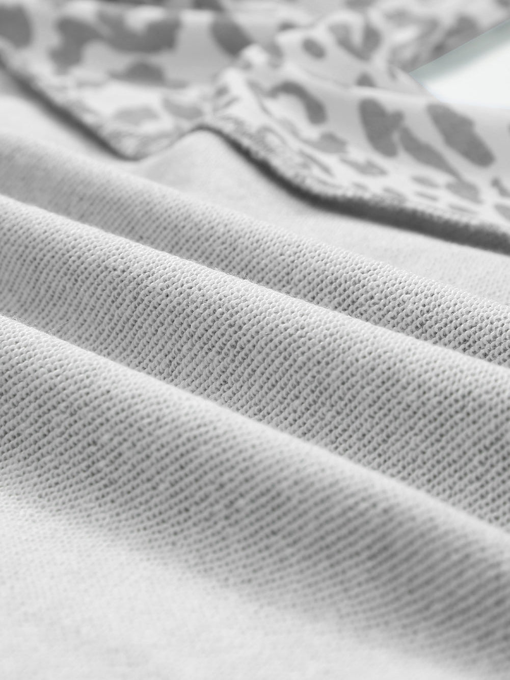 Gray Leopard Patchwork Exposed Seam Buttoned Neck Sweatshirt