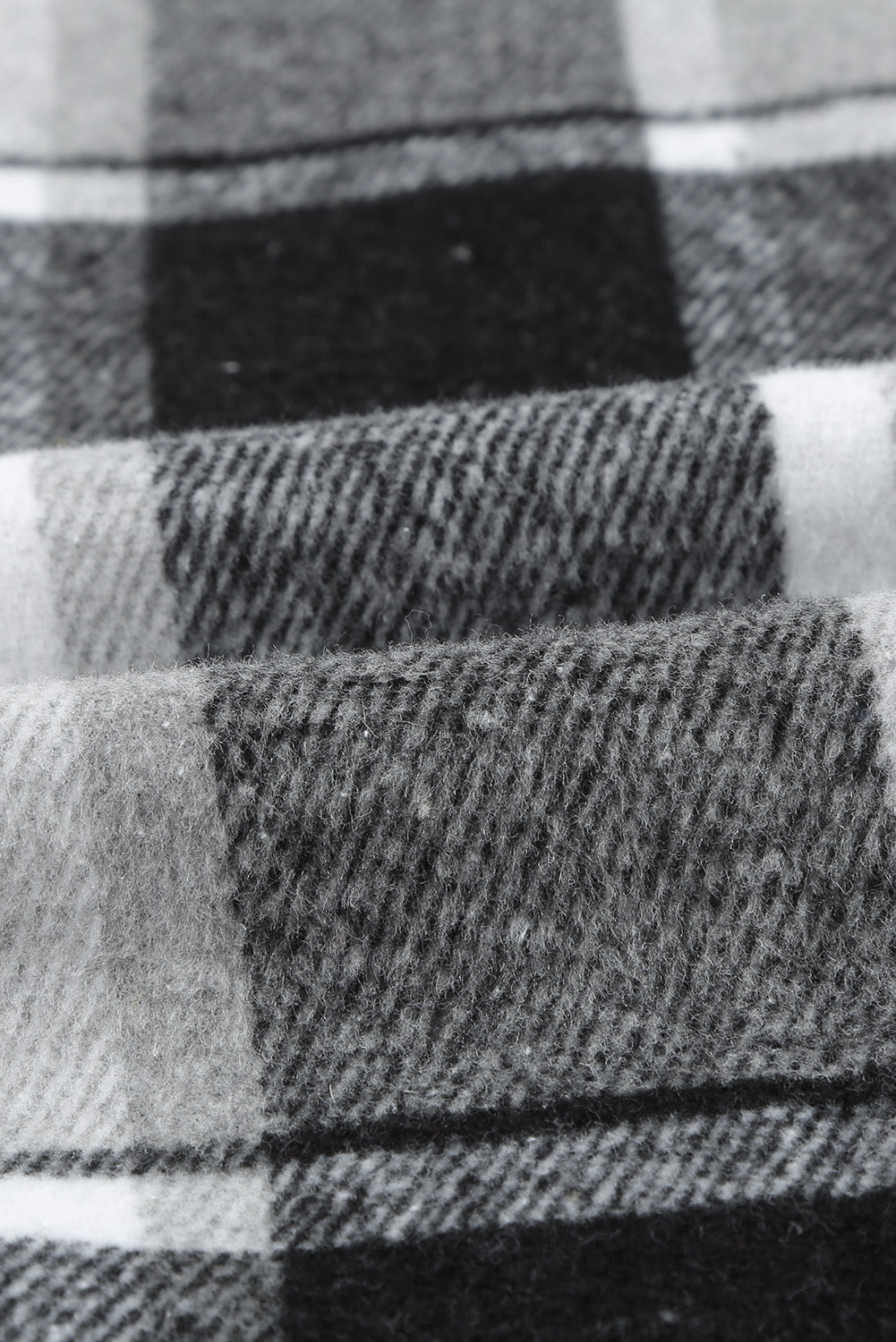 Embrace the chilly seasons in style with our Gray Plaid Print Buttoned Shirt Jacket. Crafted with care, this shacket seamlessly blends warmth and fashion, making it a must-have addition to your autumn and winter wardrobe.