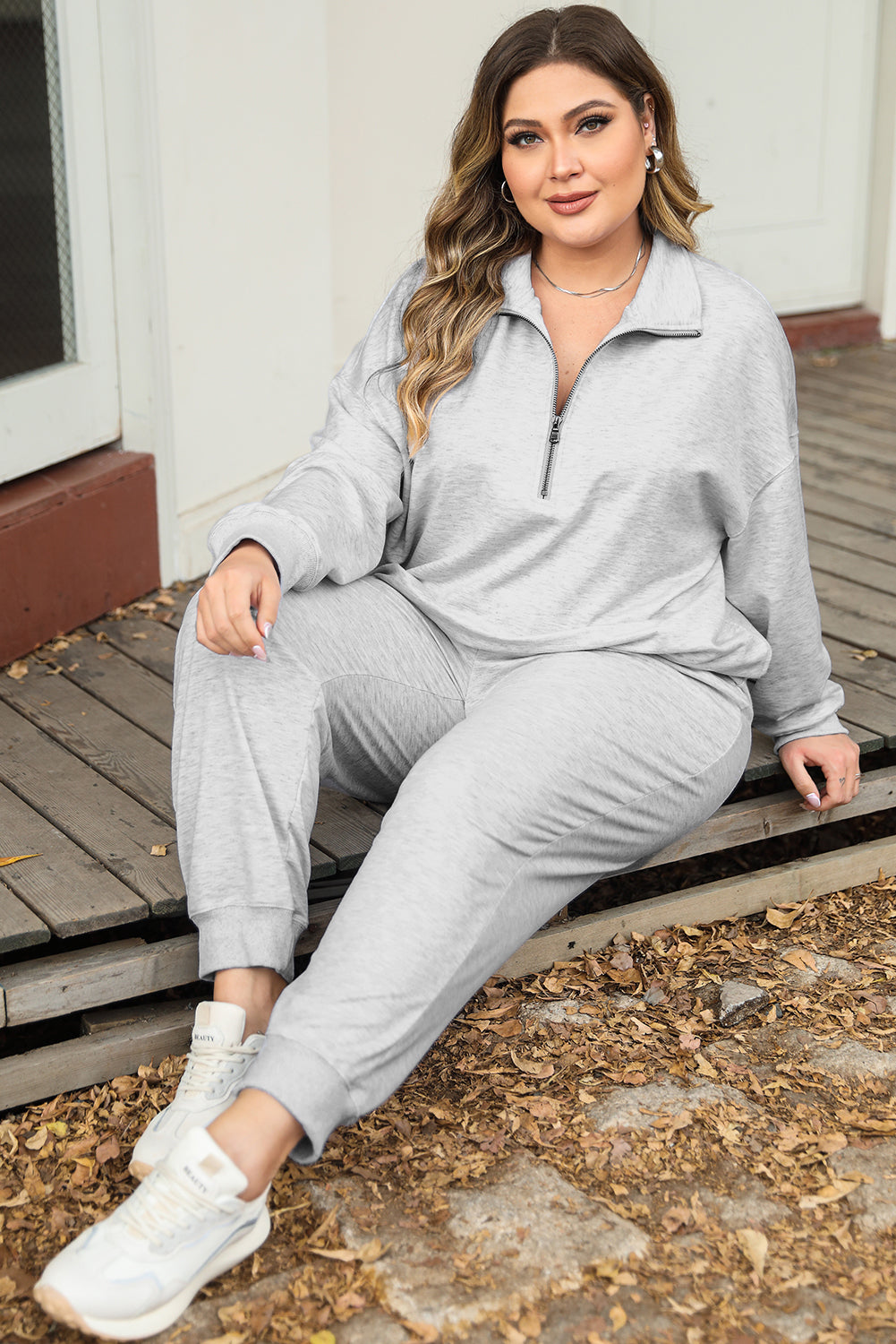 Upgrade Your Loungewear Game with Gray Zipper Pullover and Joggers Plus Size Outfits