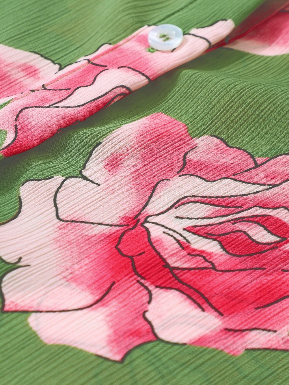 Green Floral Print Pleated Detail Puff Sleeve Shirt