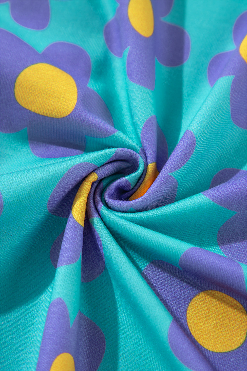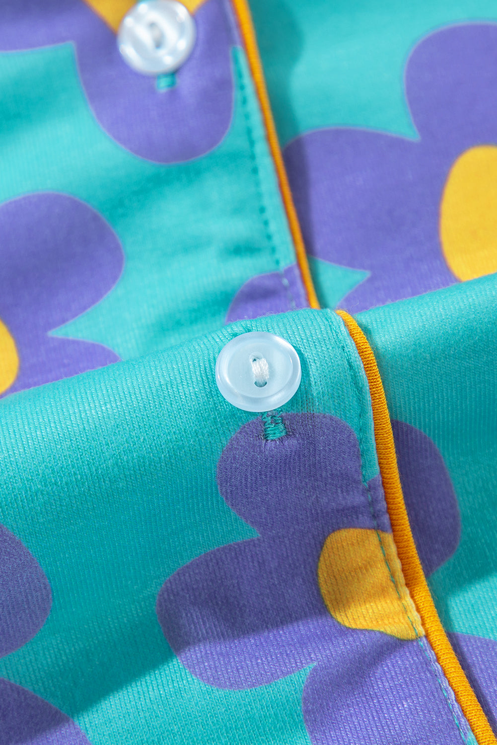 Experience Ultimate Comfort with Our Green Flower Print Long Sleeve Shirt Shorts Pajamas Set