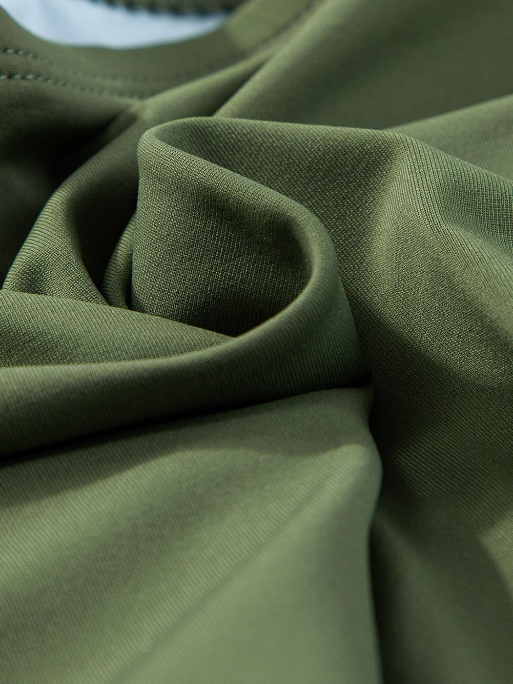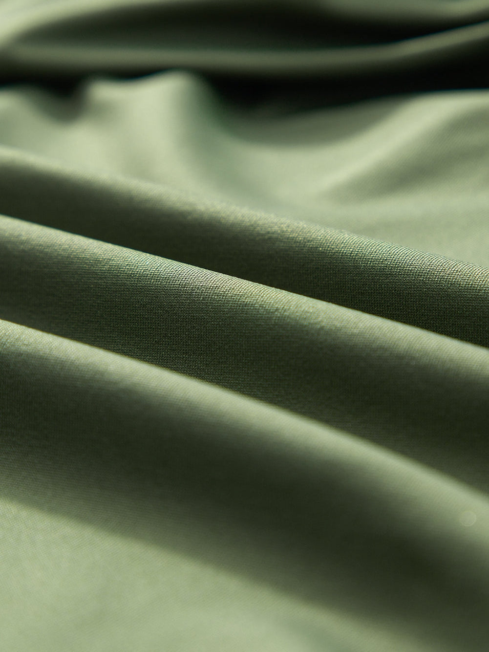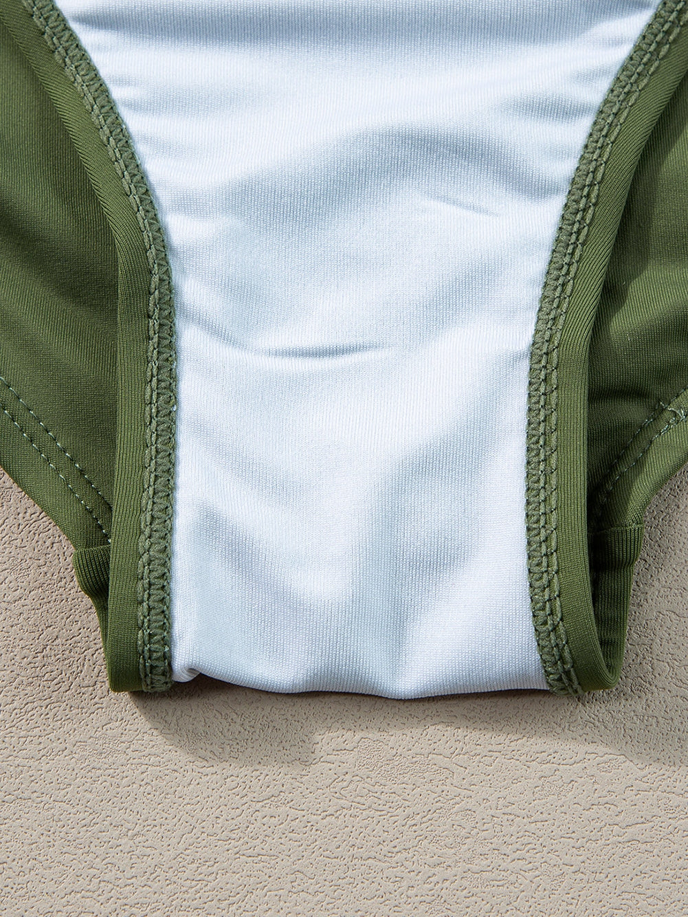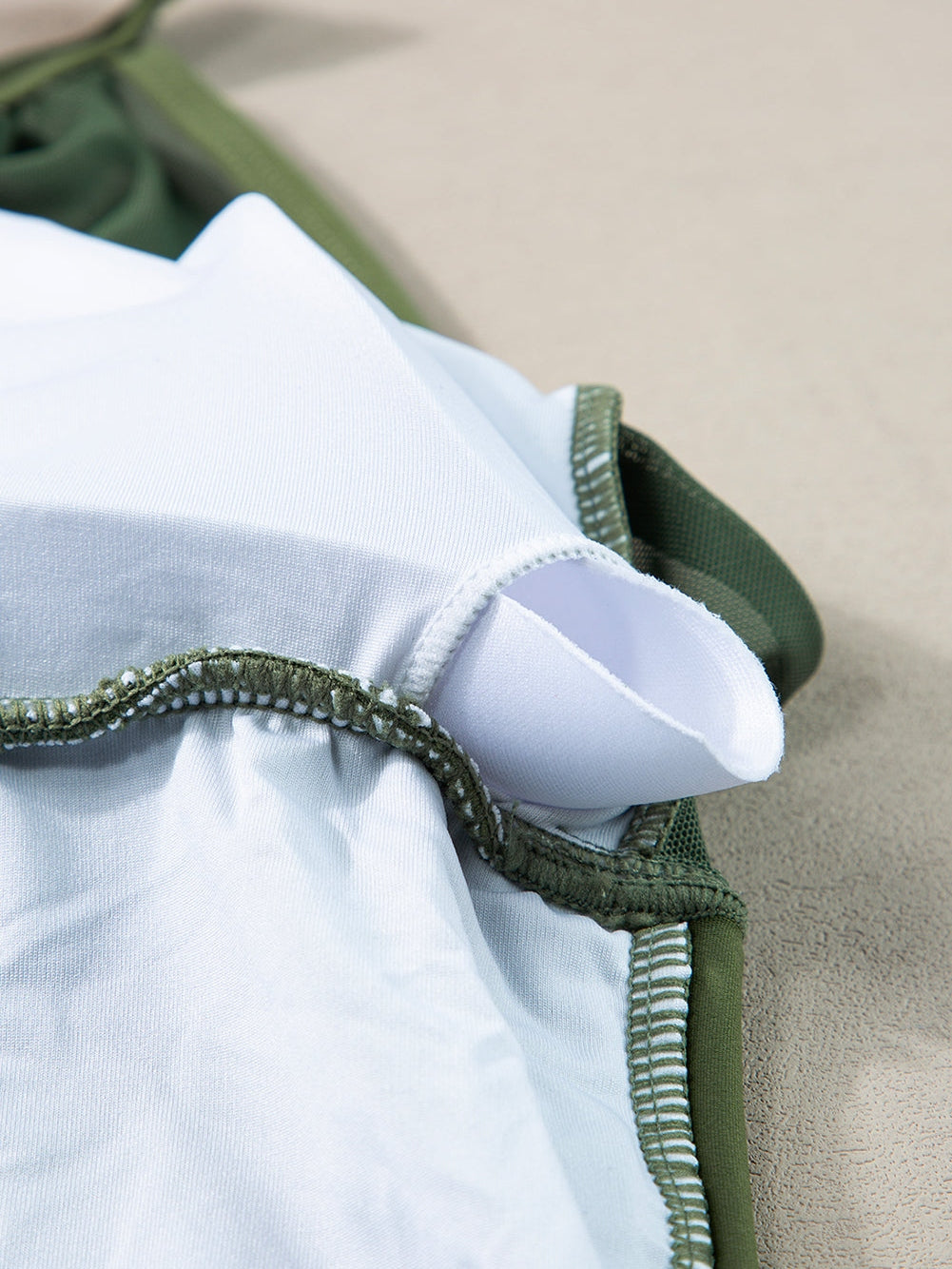 Green High Neck Plunge Mesh Ruched Tankini Swimwear