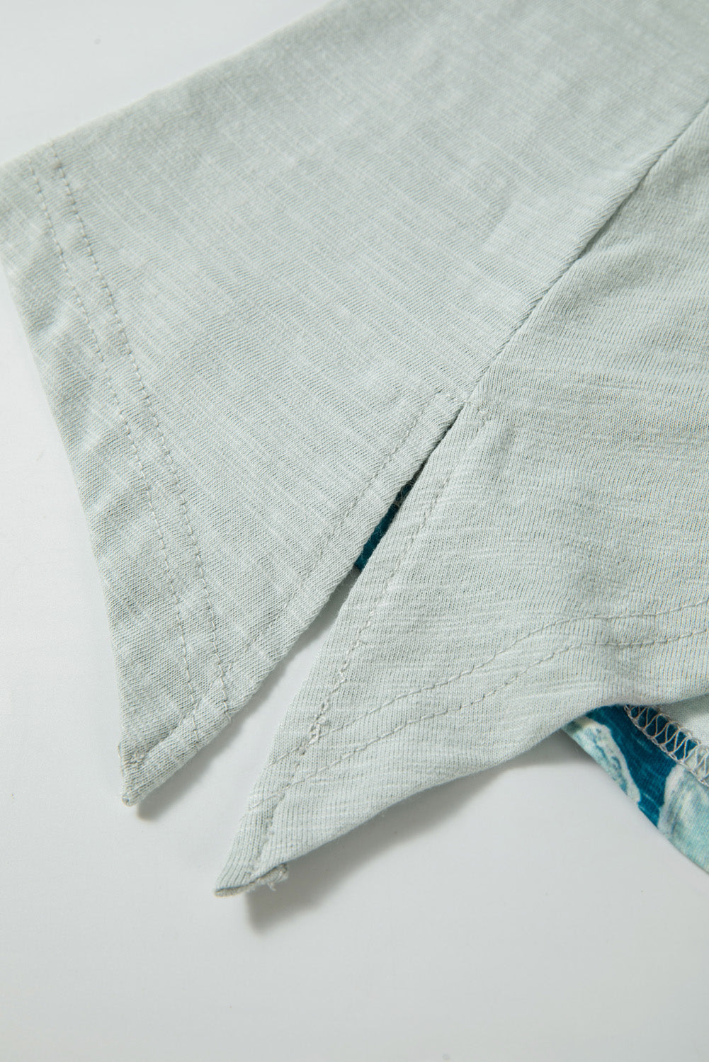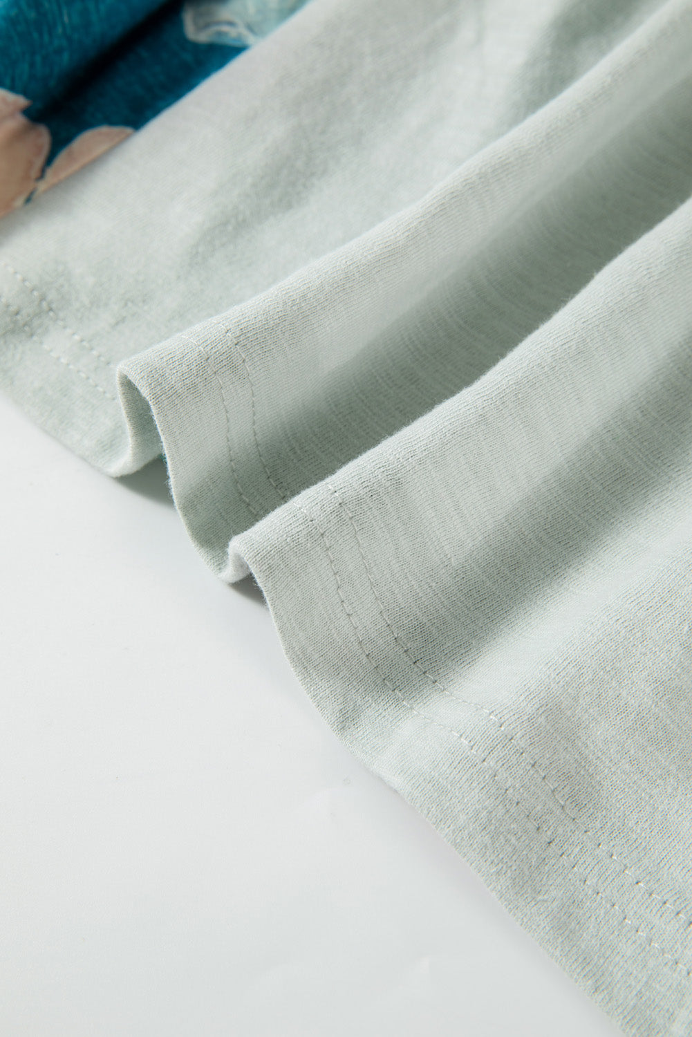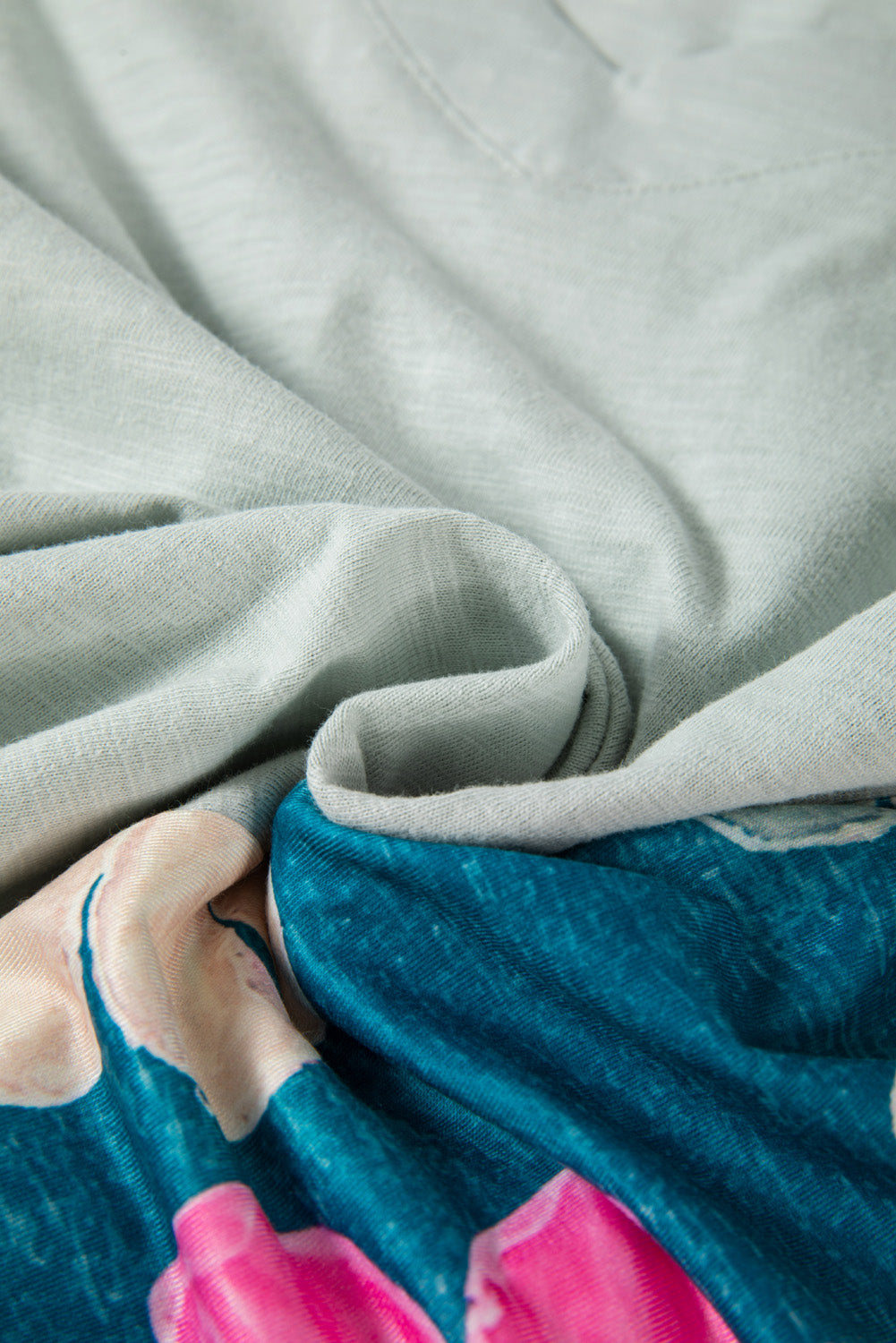 Green Plus Size Flower Patchwork Exposed Seam High Low Top