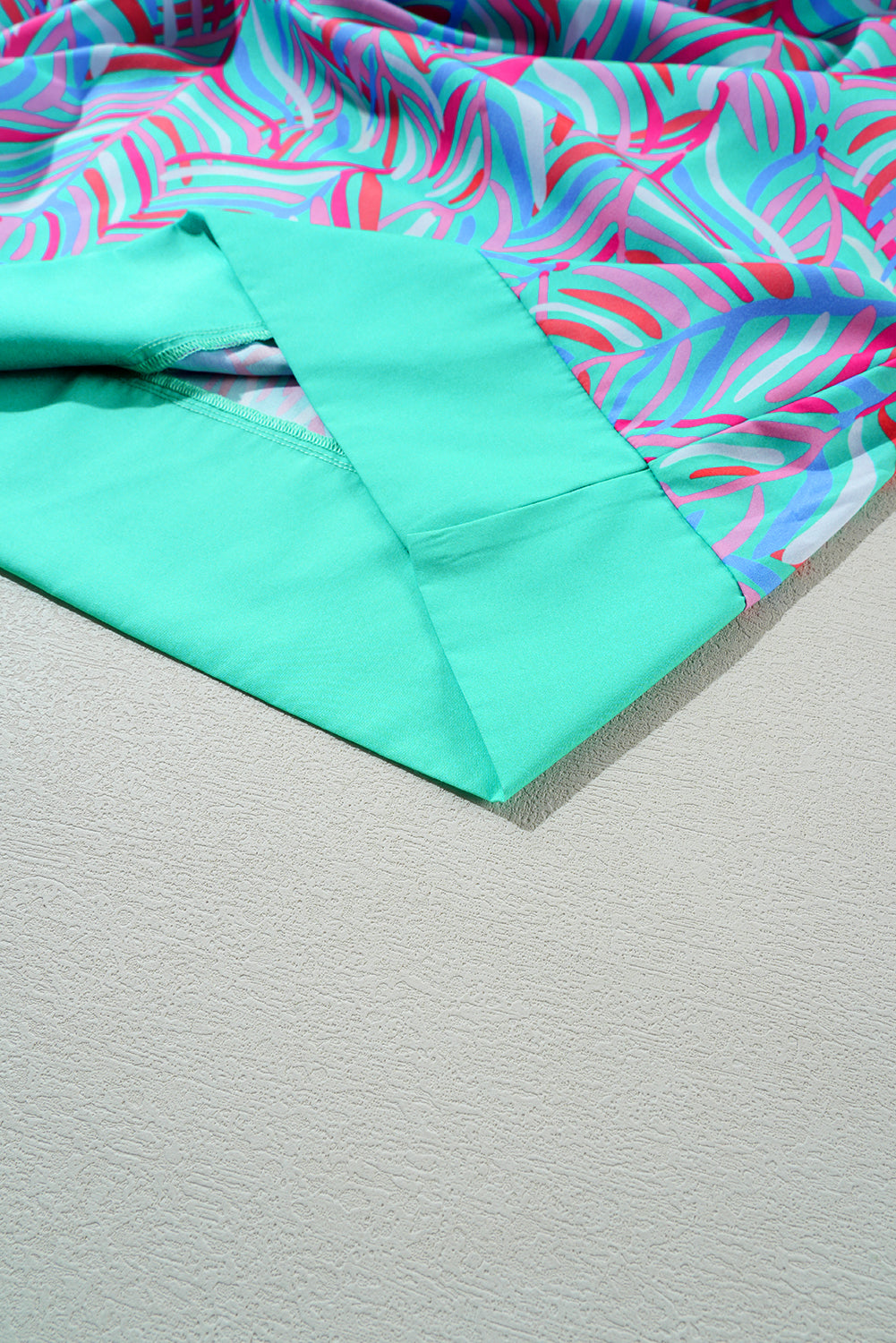 Green Plus Size Palm Pattern Long Sleeve Shift Dress