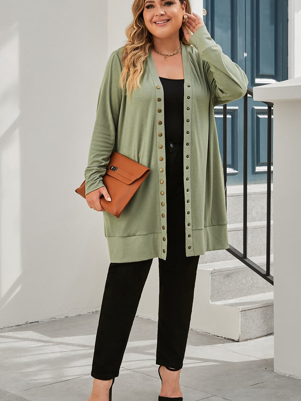 Upgrade Your Wardrobe with the Green Plus Size Snap Buttons Front Knit Cardigan