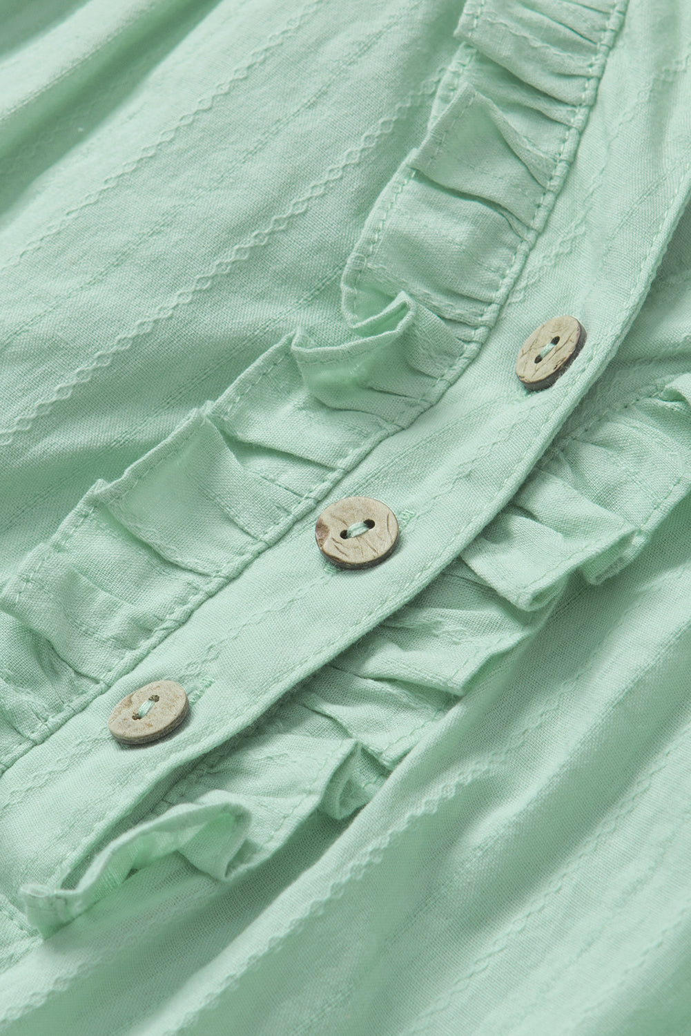 - Feminine Frilled Accents: The charming frills enhance the blouse's feminine appeal, perfect for creating a romantic look.