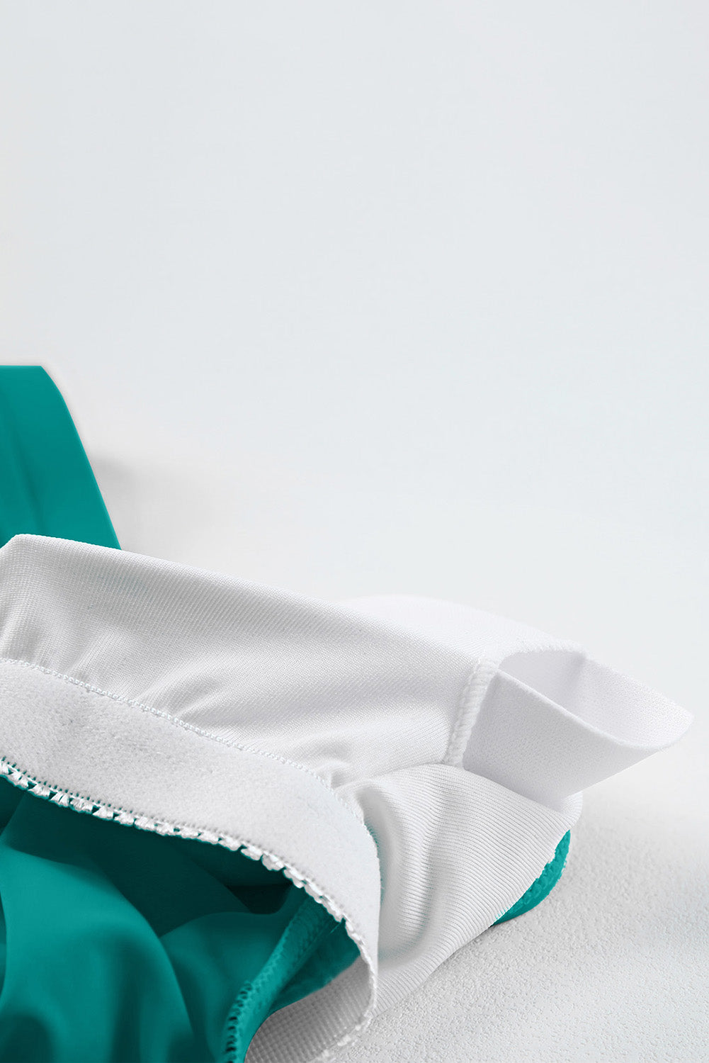 With its solid green color, this tankini provides a sleek and timeless appearance, ensuring you stand out in style. Whether you're lounging by the pool or taking a dip in the ocean, this swimsuit allows for freedom of movement while maintaining a comfortable fit.