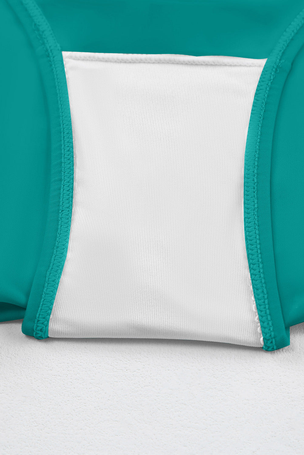 Green Solid Square Neck Sleeveless Tankini Swimsuit