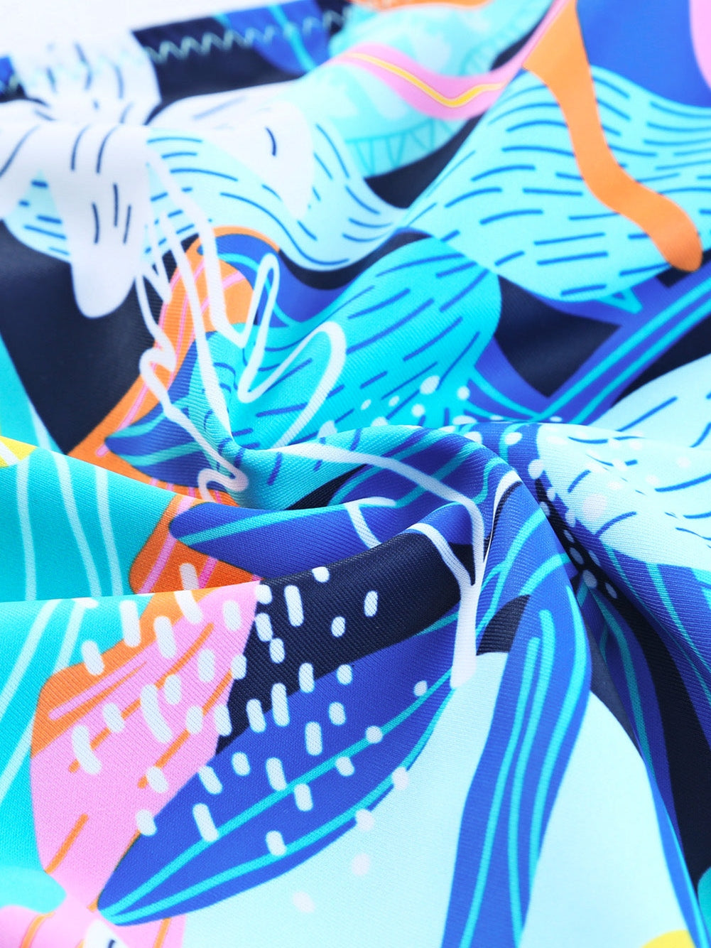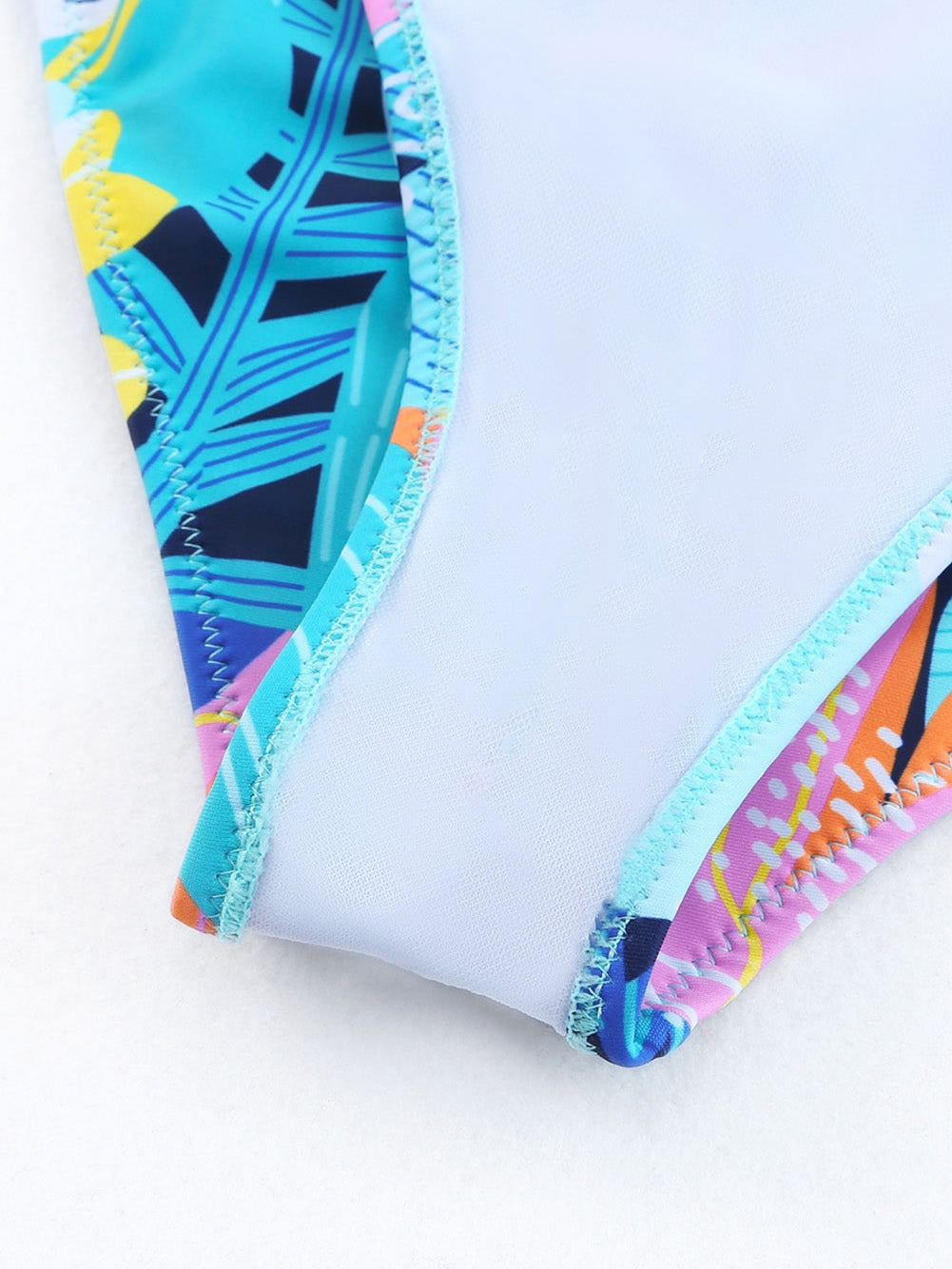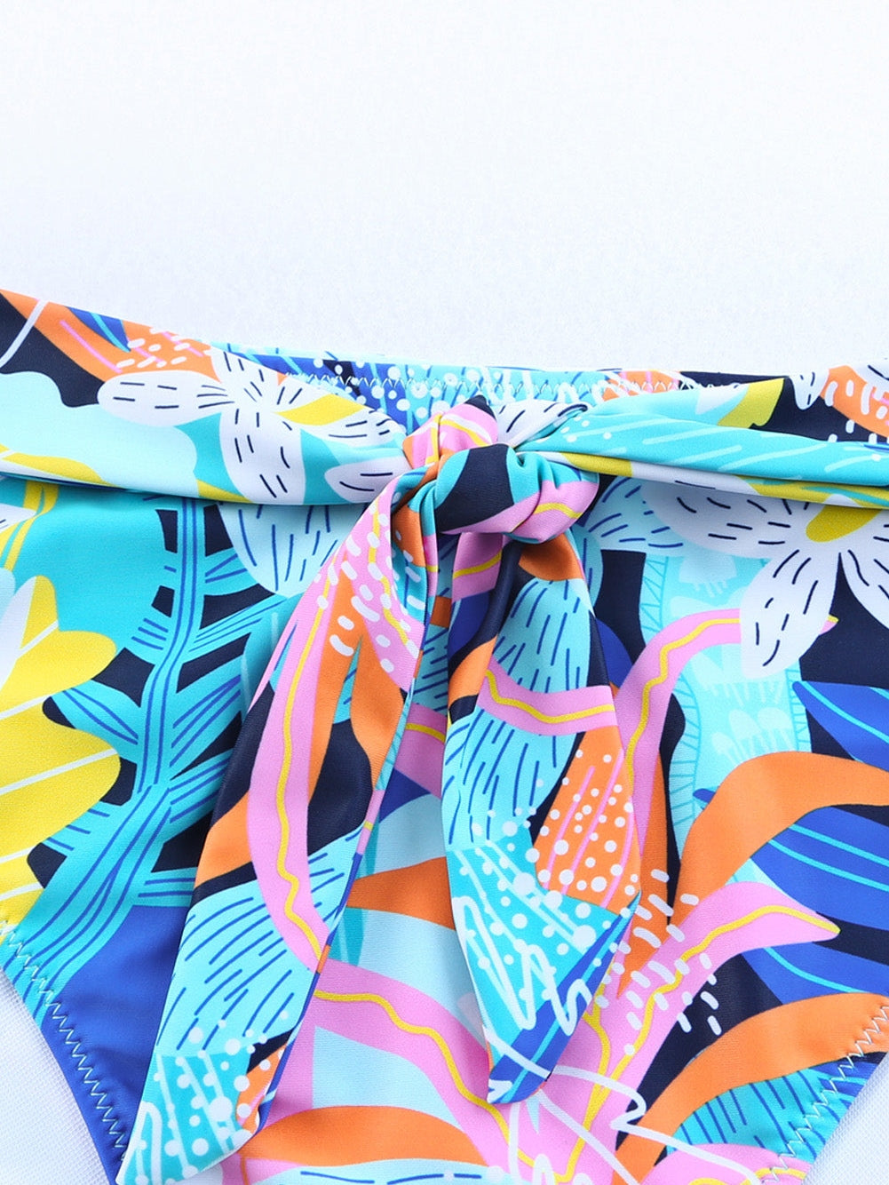 Green Tropical Print Ruffled Square Neck Tie High Waist Swimsuit