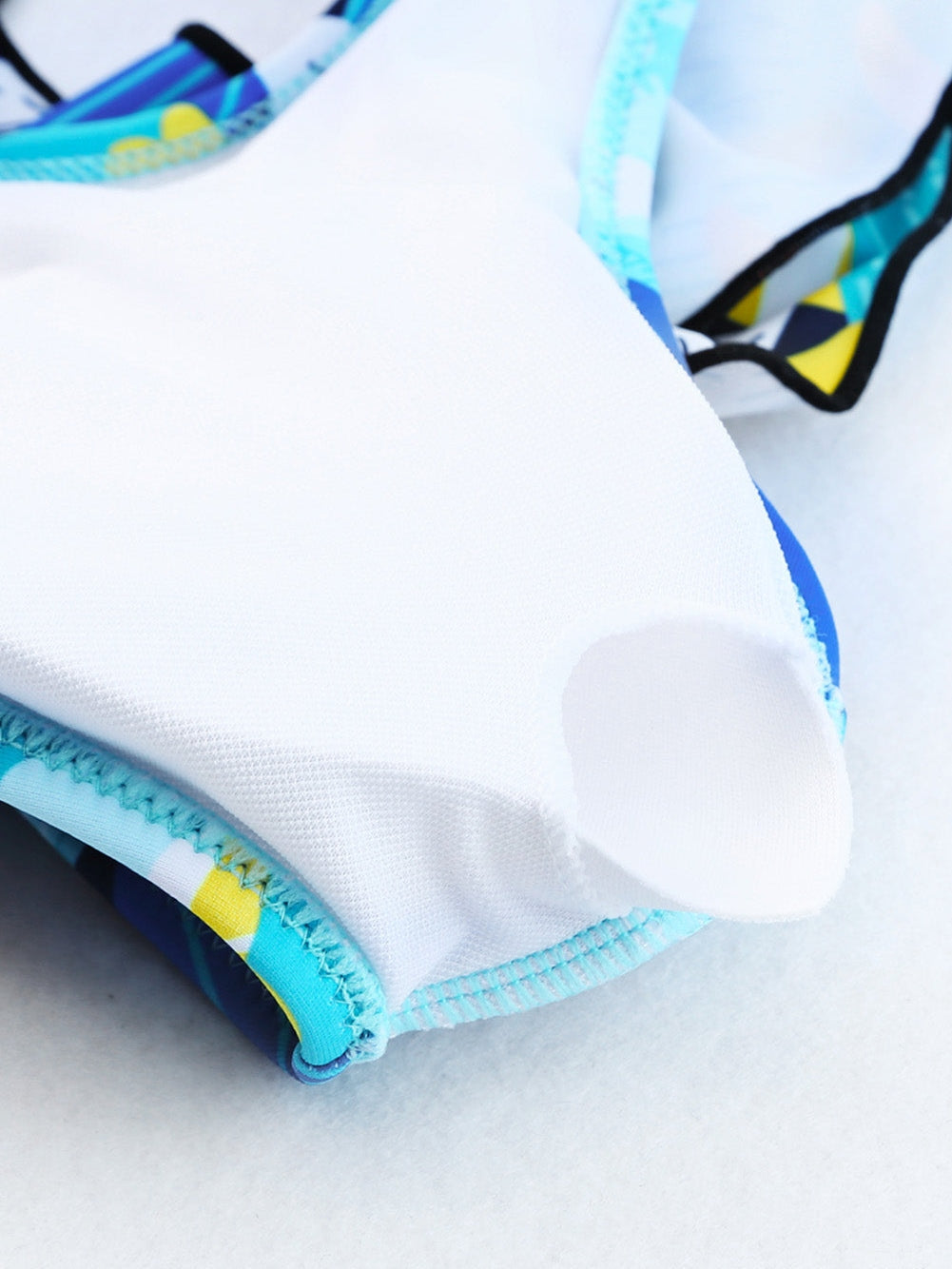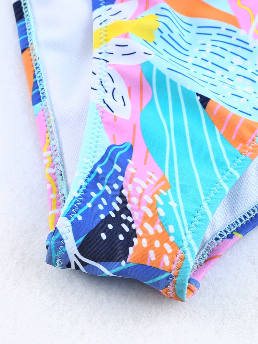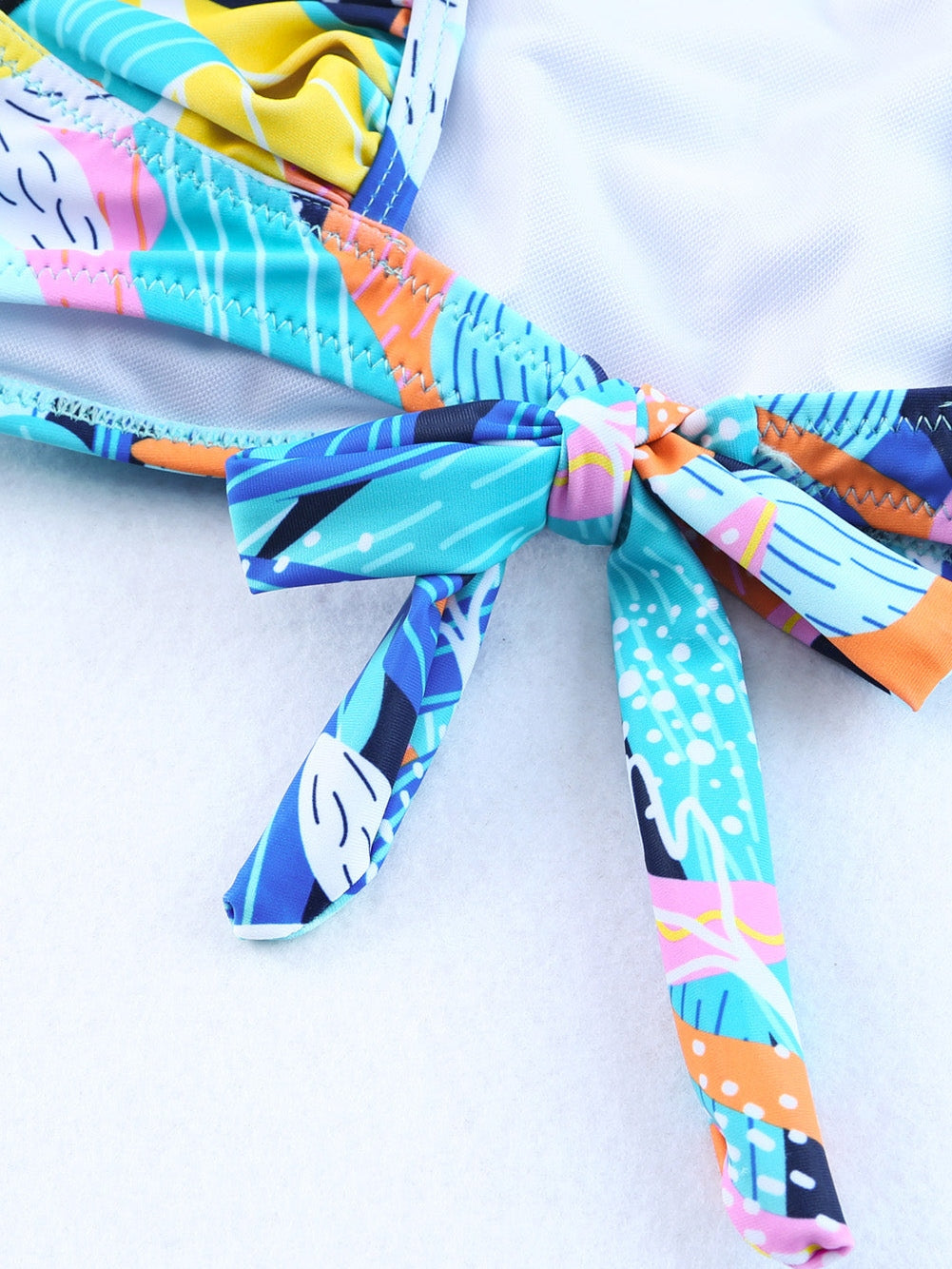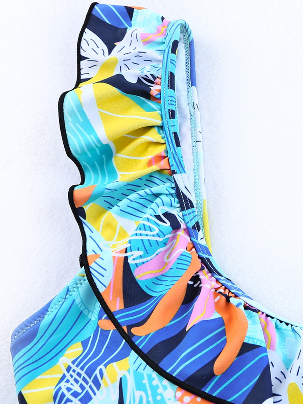 Green Tropical Print Ruffled Square Neck Tie High Waist Swimsuit