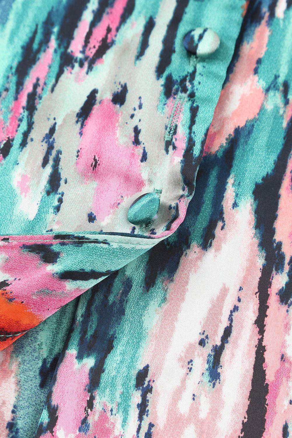 This Green V Neck Abstract Print Long Sleeve Shirt is a fashion-forward piece that is both elegant and versatile. The abstract print on the shirt is not only trendy but also eye-catching, making it a stylish addition to your wardrobe.