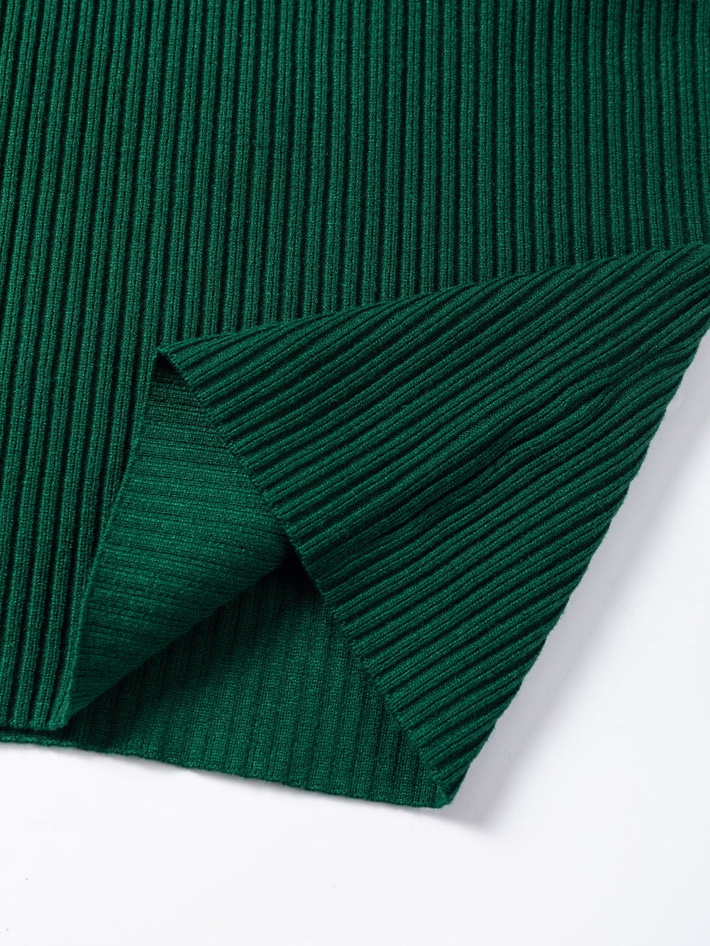 Visualize an intimate dinner party hosted in a chic restaurant. You arrive dressed in the Jungle Green Plus Size Mock Neck Sweater, combined with a fitted black midi skirt and stylish ankle boots. The cozy ribbed texture of the sweater contrasts beautifully with the sleekness of the skirt, creating an inviting look that is both classy and comfortable. As you sit at the table, your ensemble sparks compliments, making you feel at ease and stylish throughout the evening.