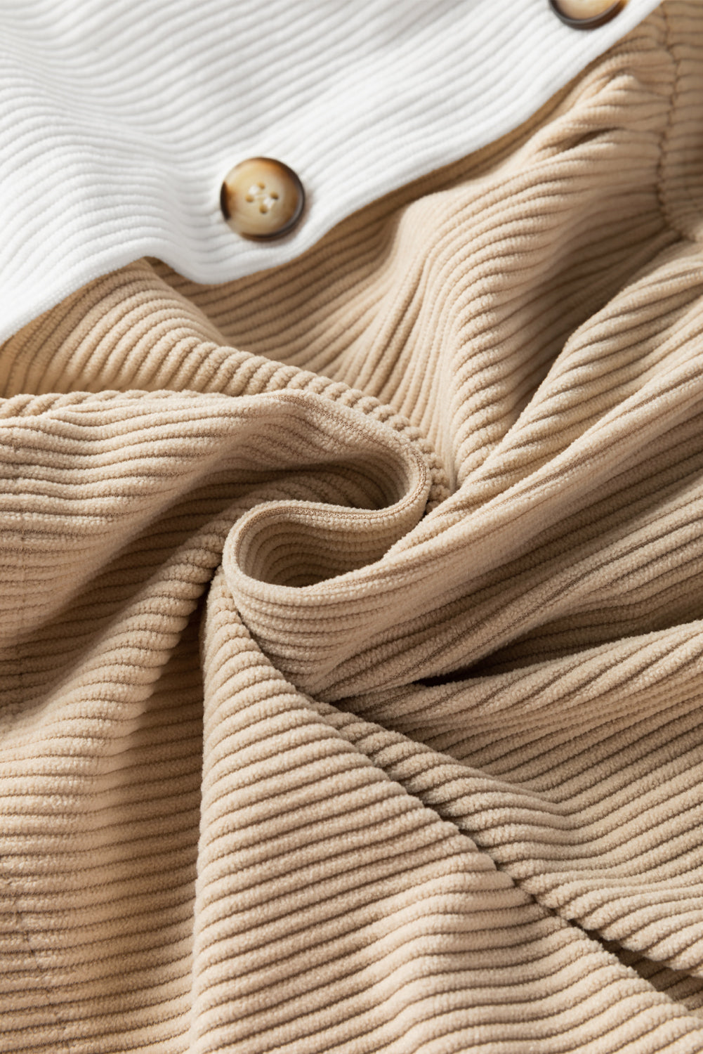 Elevate your everyday look with this fashionable piece that transitions seamlessly from day to night. Experience the charm of the Khaki Corduroy Colorblock Button Up Loose Shacket and embrace comfort without compromising on style.