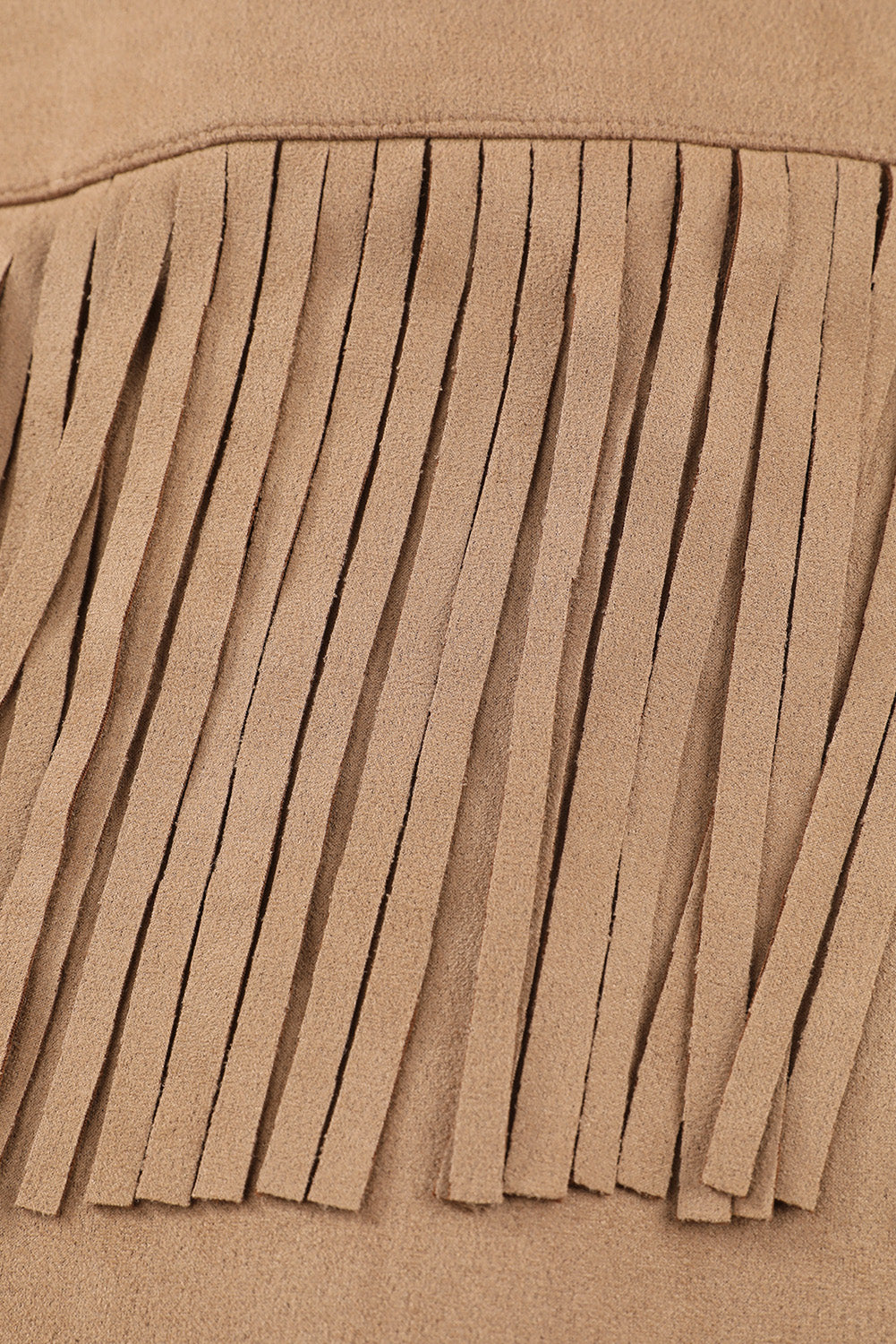 Khaki Suede Shacket with Fringe Detail for Plus Size Women