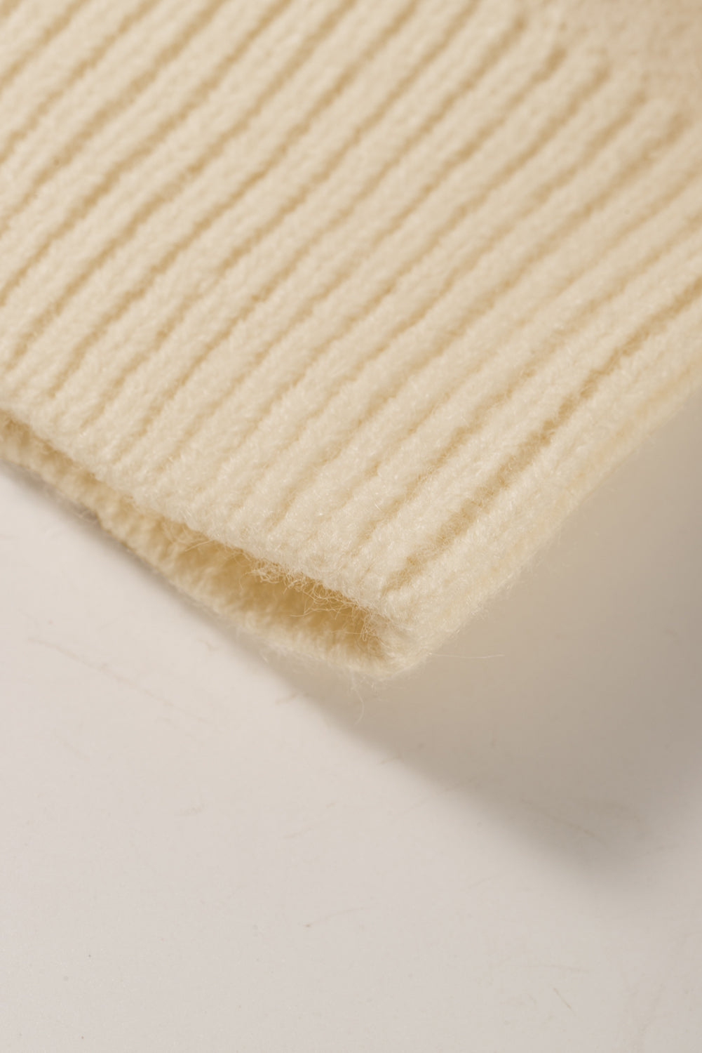 - Ribbed trim on sleeves and hem for texture and structure