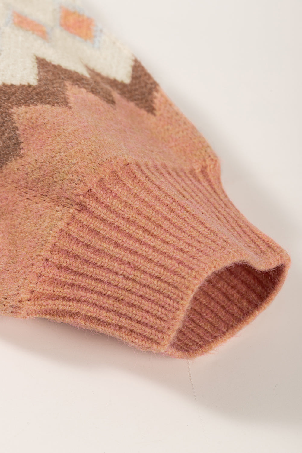Khaki Geometric Pattern Ribbed Trim High Neck Sweater