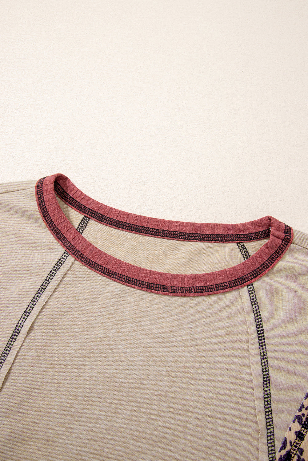 Khaki Leopard Serape Patchwork Exposed Stitching Pullover Top
