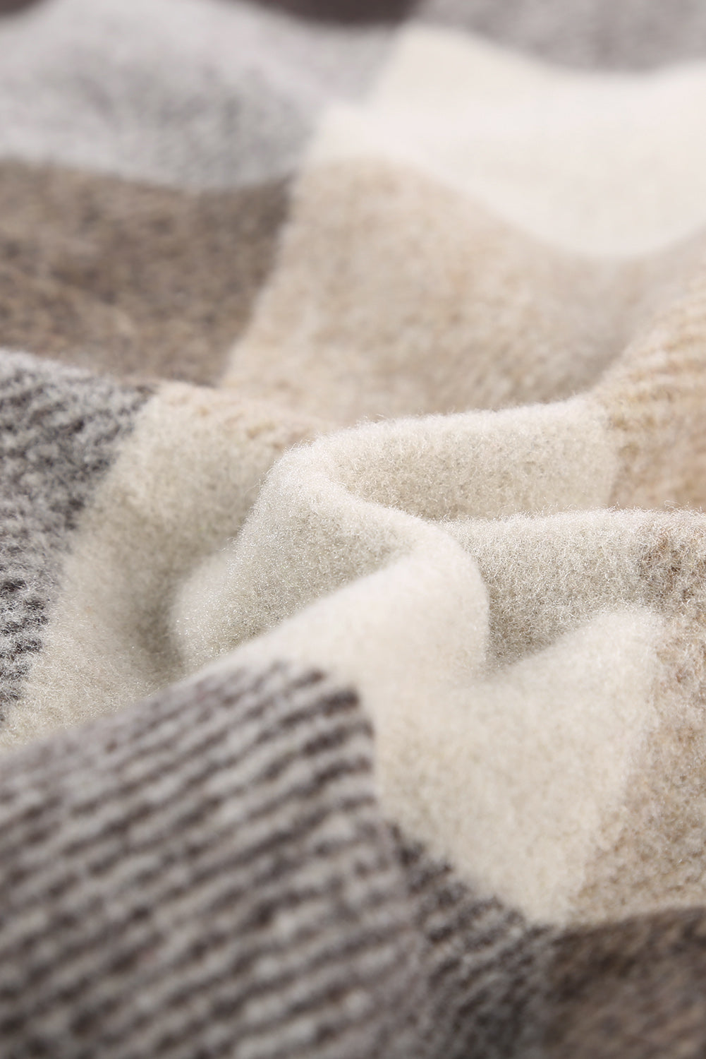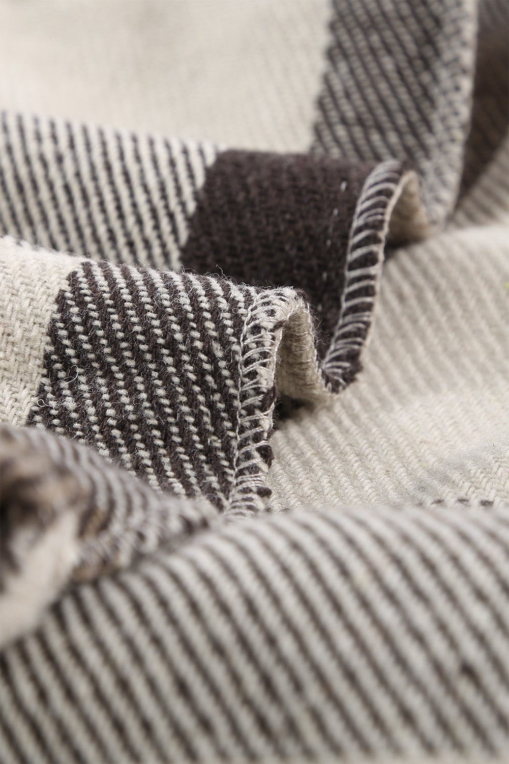 Elevate Your Wardrobe with Our Khaki Plaid Color Block Buttoned Long Sleeve Jacket