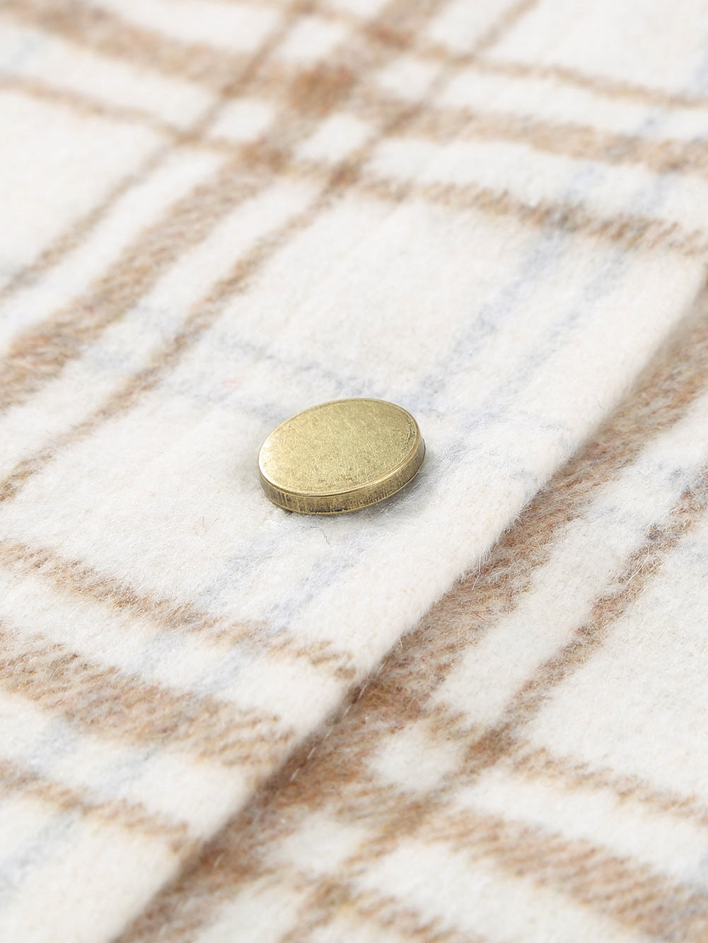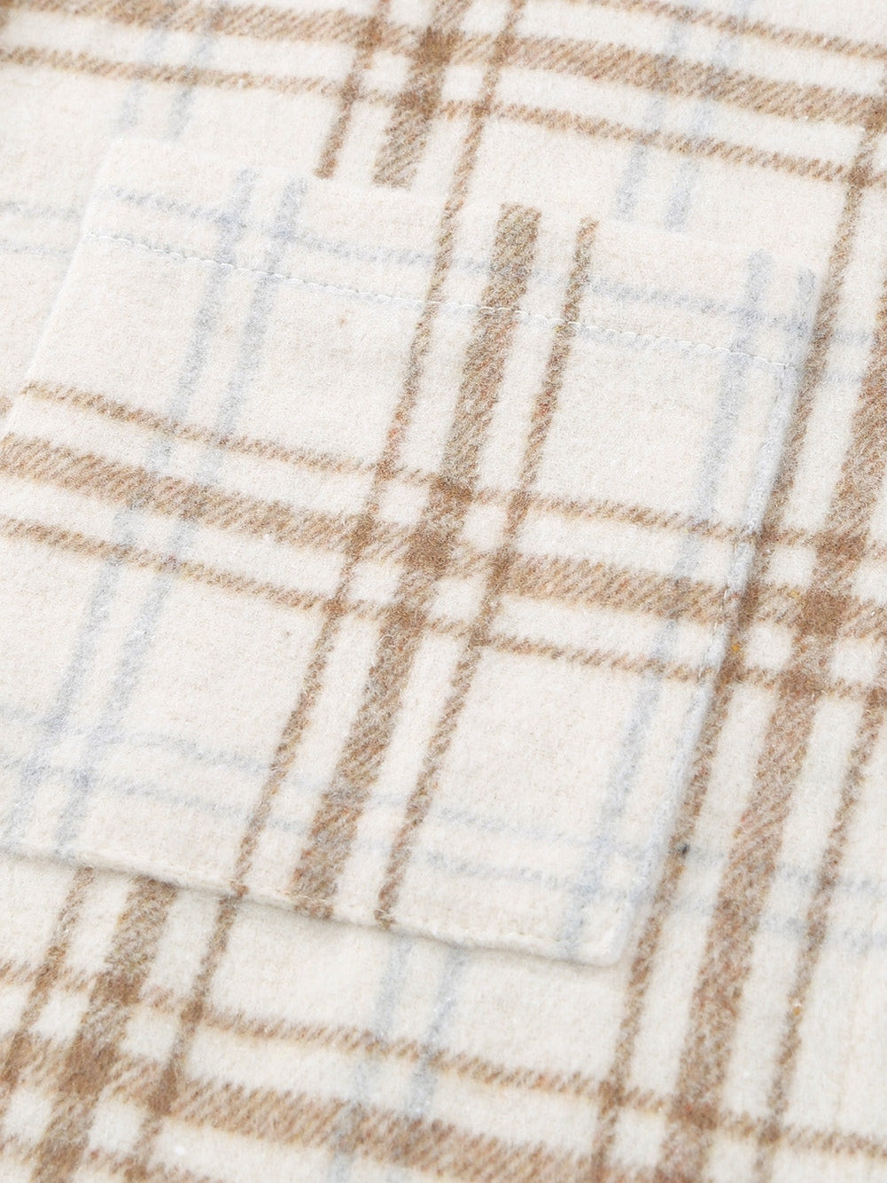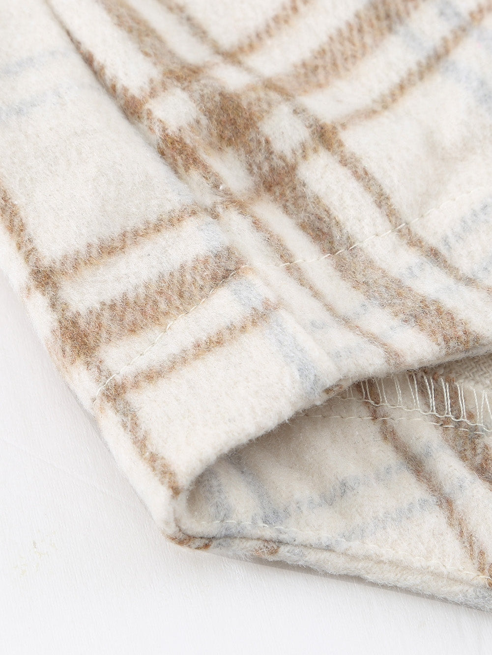 Khaki Plaid Button-Up Shirt Jacket with Side Slits
