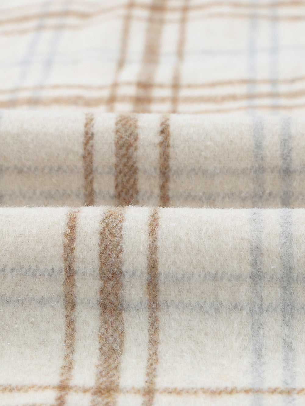 Khaki Plaid Pattern Buttoned Shirt Coat with Slits