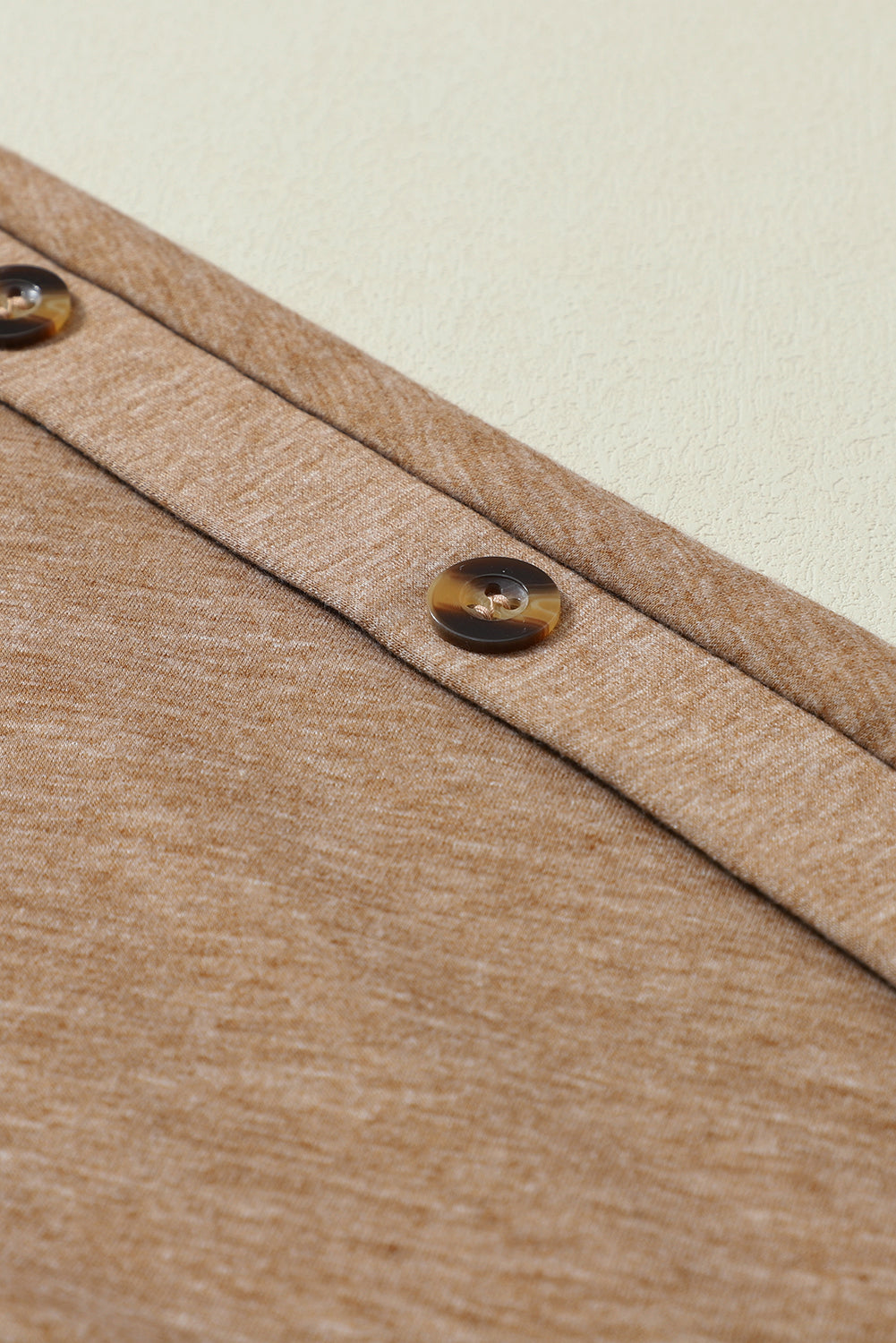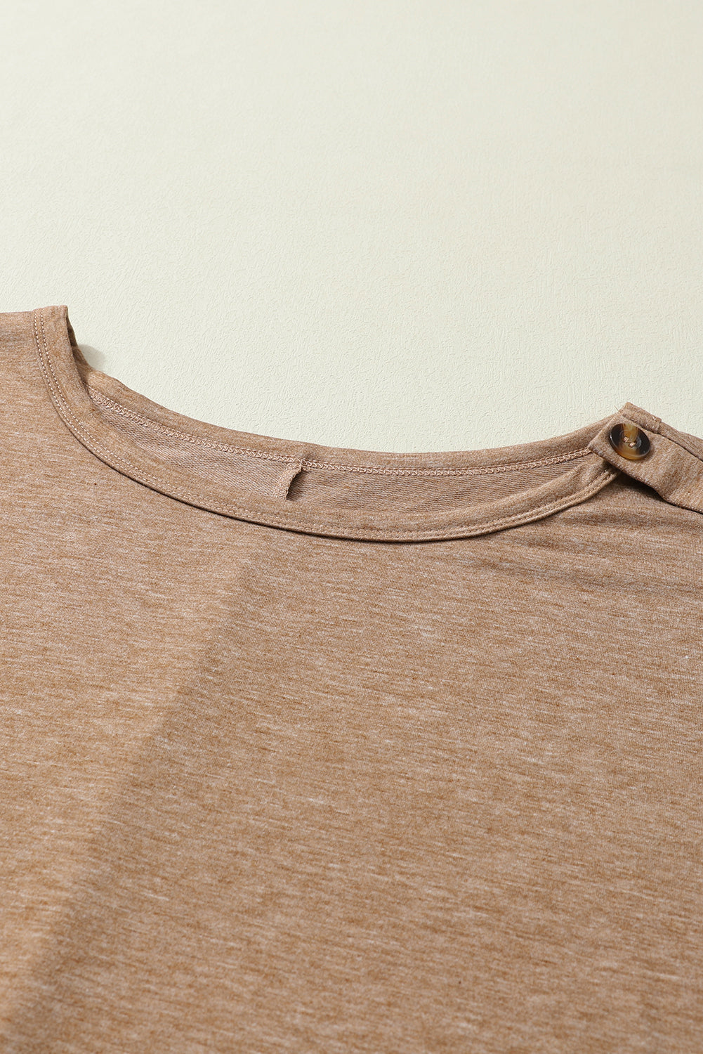 Khaki Solid Color Button Decor Dolman Sleeve Top