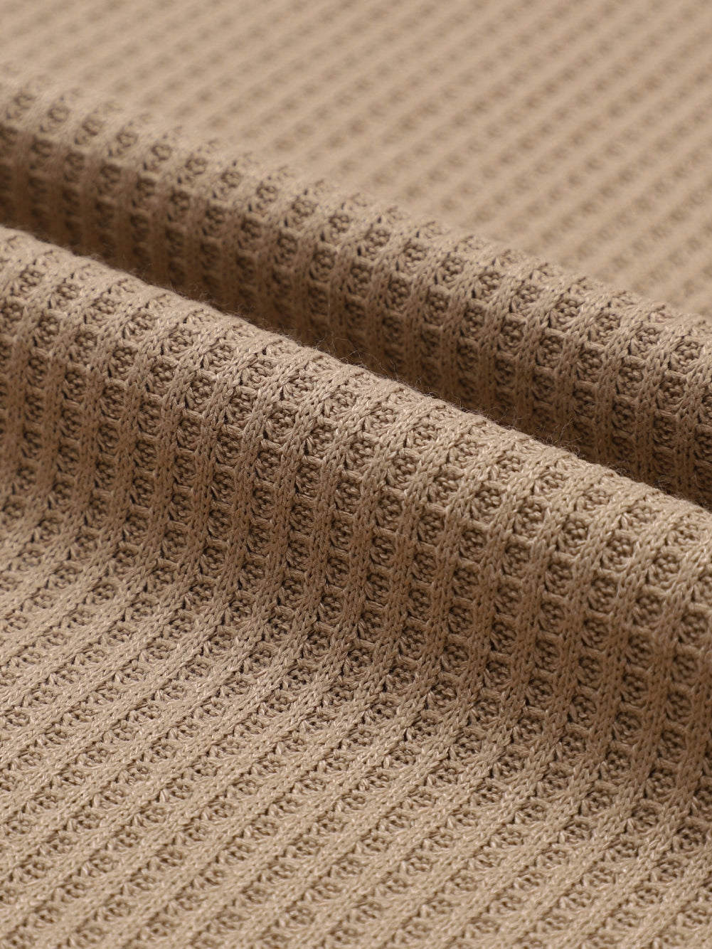 Khaki Exposed Seam Waffle Knit Hoodie with Adjustable Drawstring