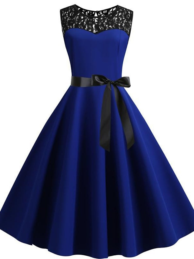 Lace Dress Vintage Dress Swing Dress Midi Dress Light Blue Wine Red Black Sleeveless Print Lace up Summer Spring Fall Crew Neck 1950s Party Spring Dress S M L XL XXL for Women